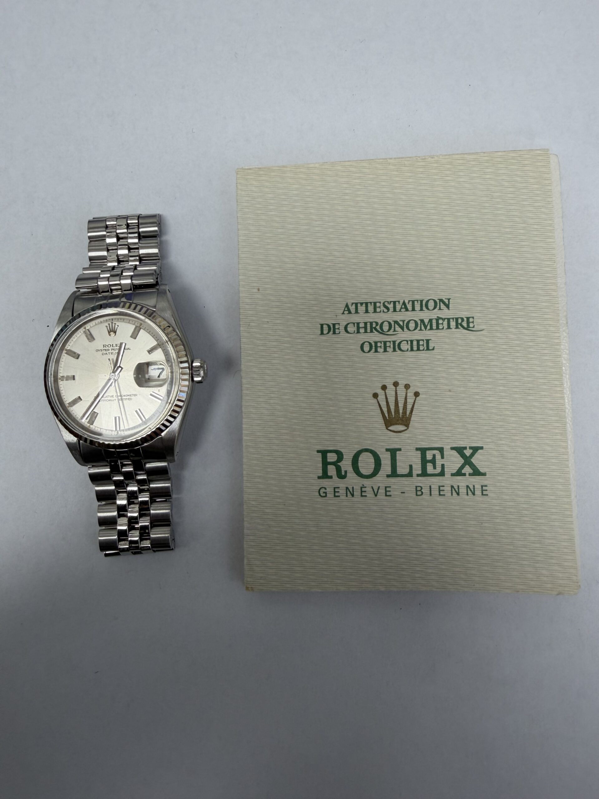 Rolex Datejust Silver Dial on Jubilee Ref 1601/4 with Papers 1970