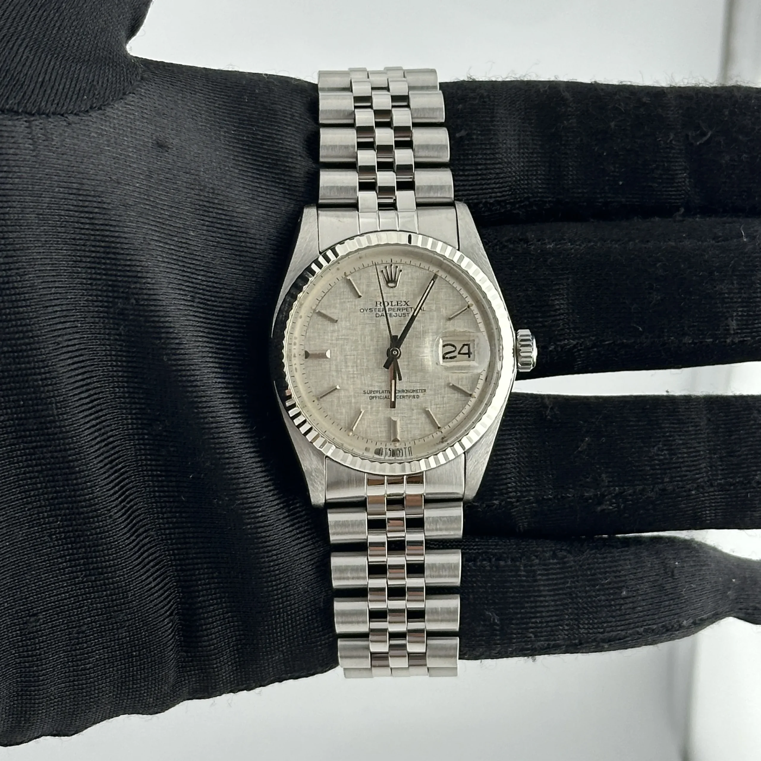 Rolex Datejust Silver Linen Dial on D Link Jubilee Ref 1601/4