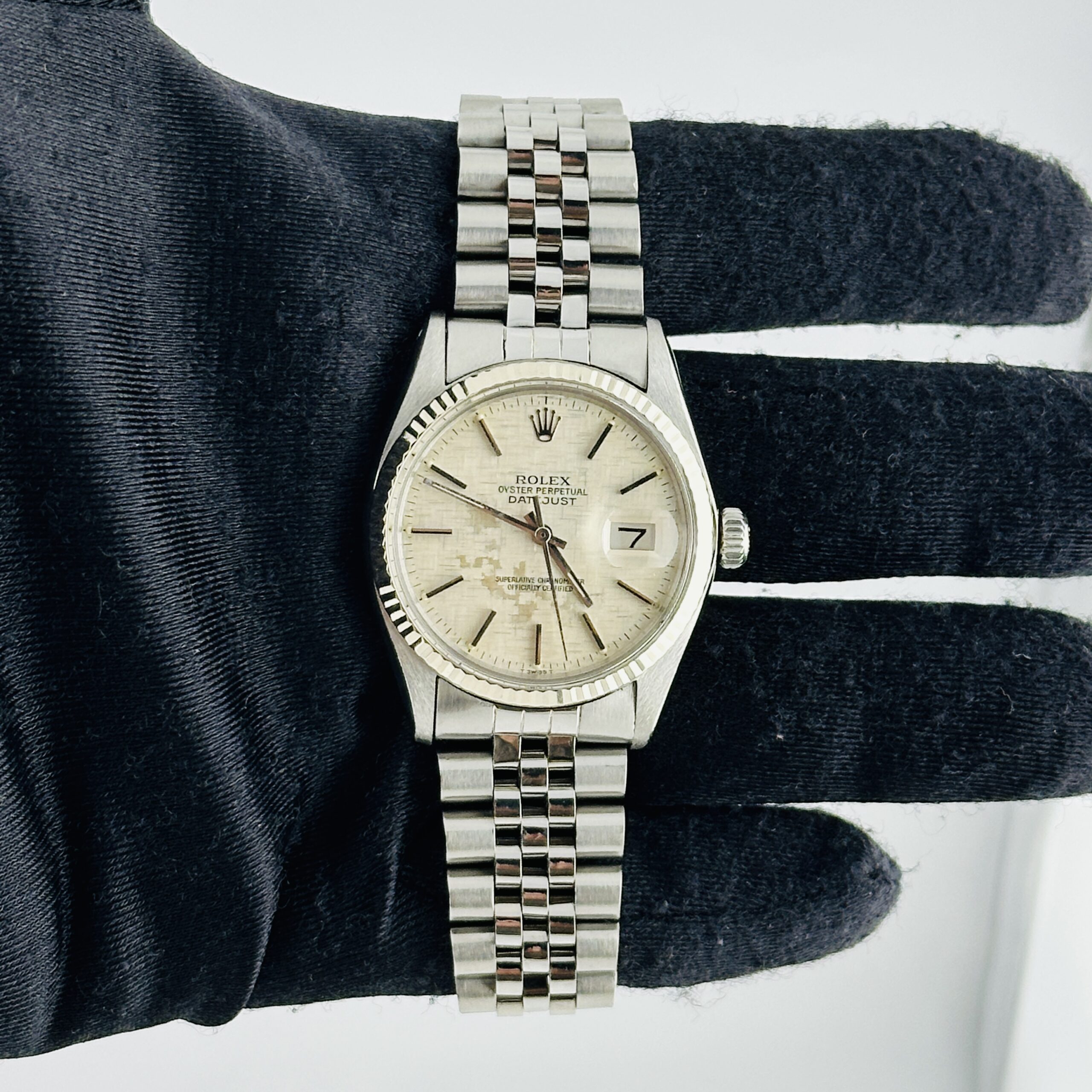Rolex Datejust Silver Linen Dial on D Link Jubilee Ref 16014