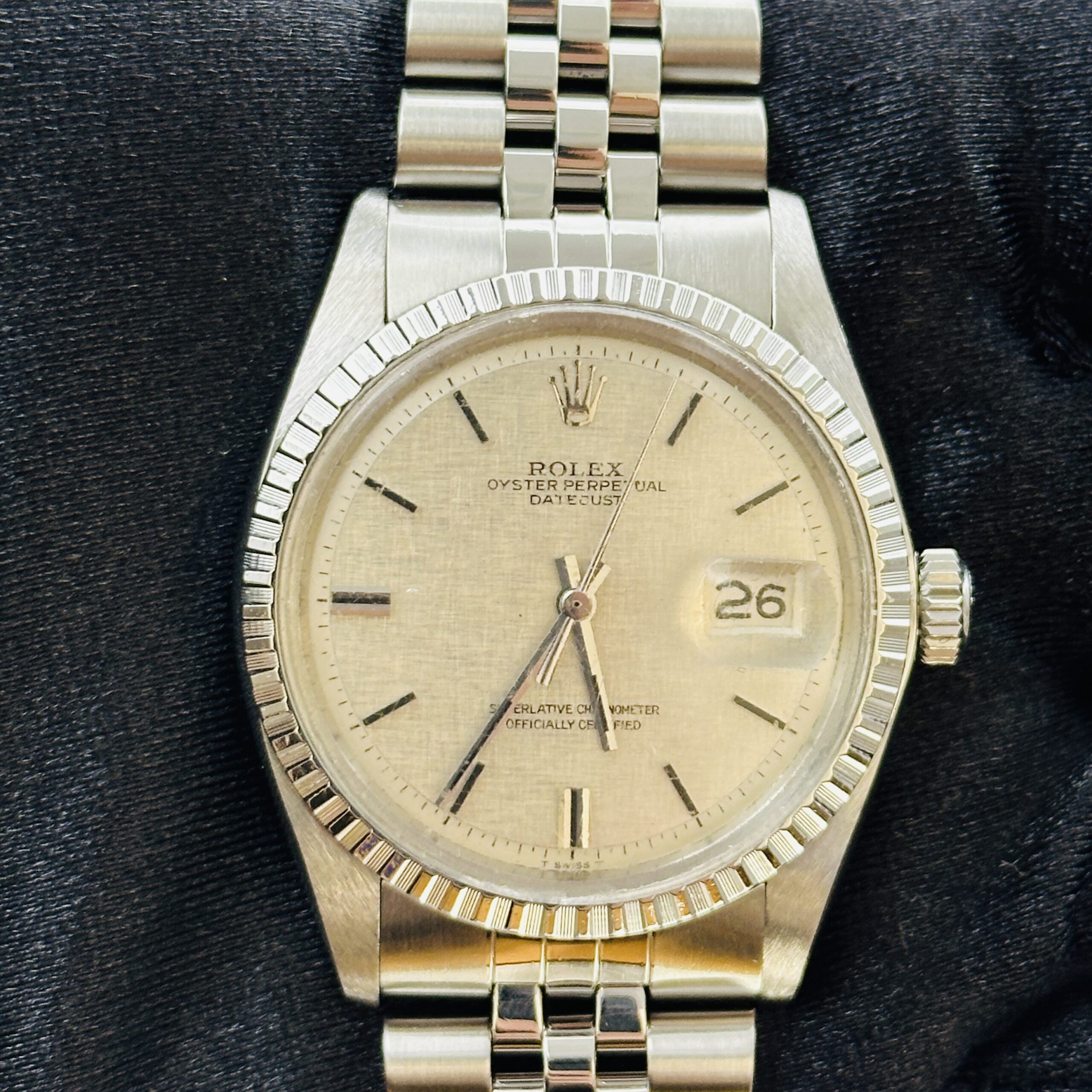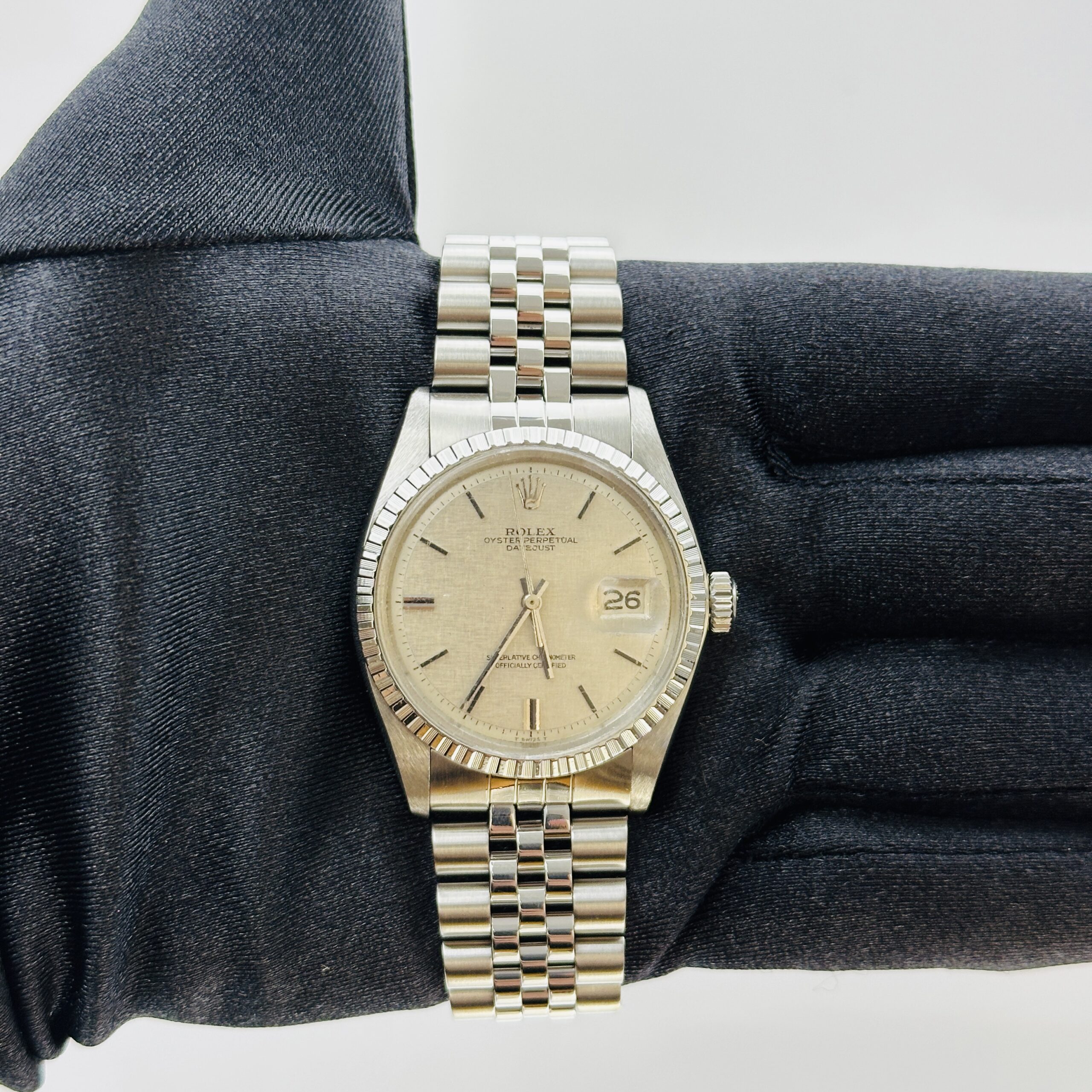 Rolex Datejust Silver Linen Dial on D Link Jubilee Ref 1603