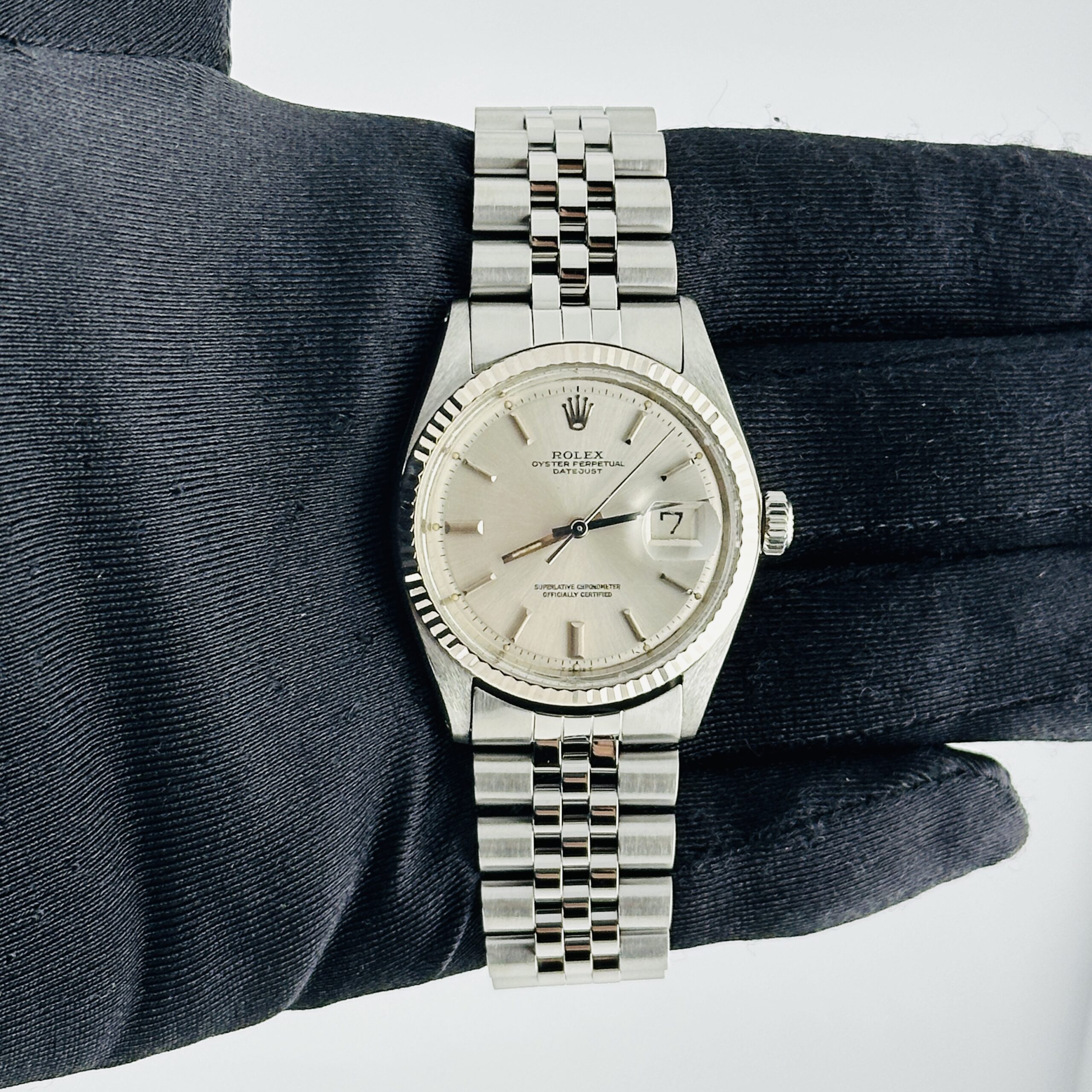 Rolex Datejust Silver Stick Dial on D Link Jubilee Ref 1601/4