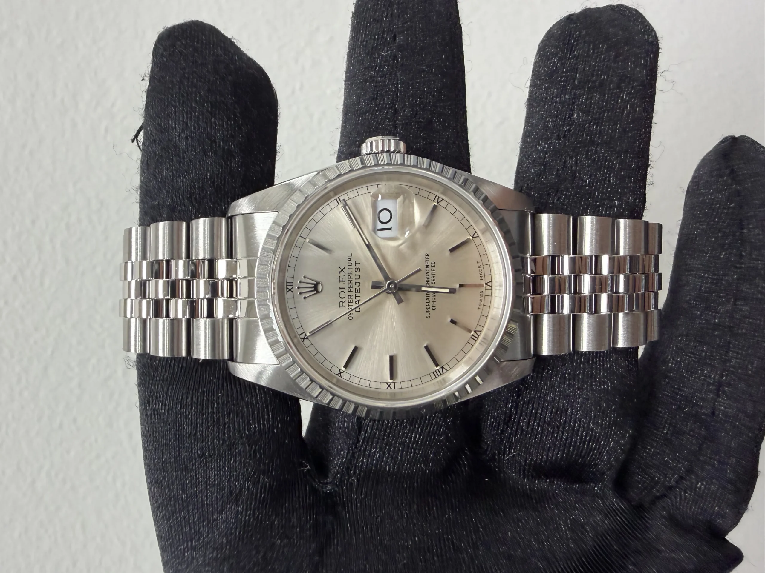 Rolex Datejust Silver Stick Dial on D Link Jubilee Ref 16220