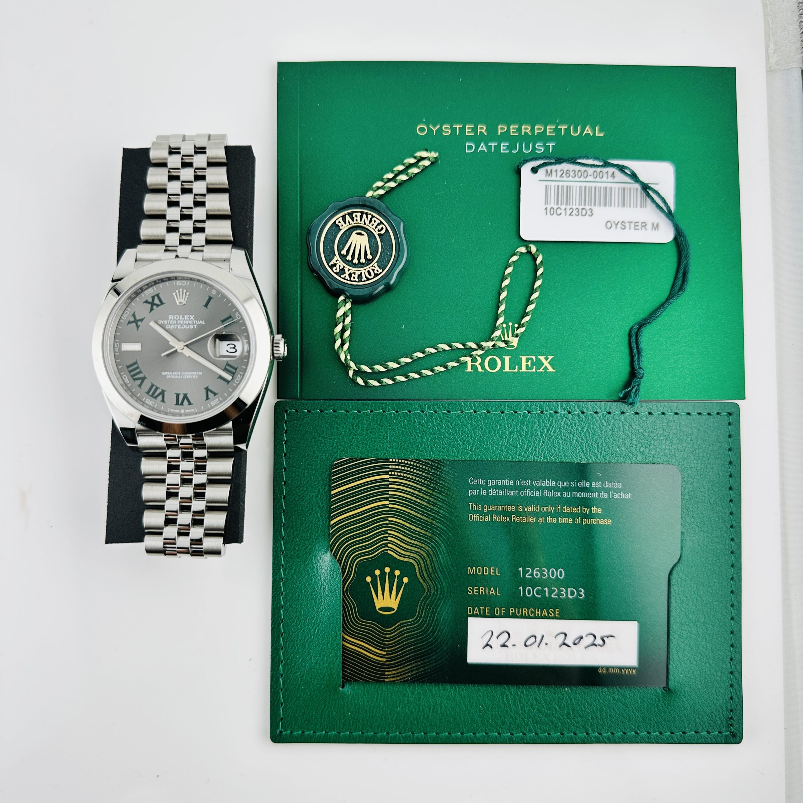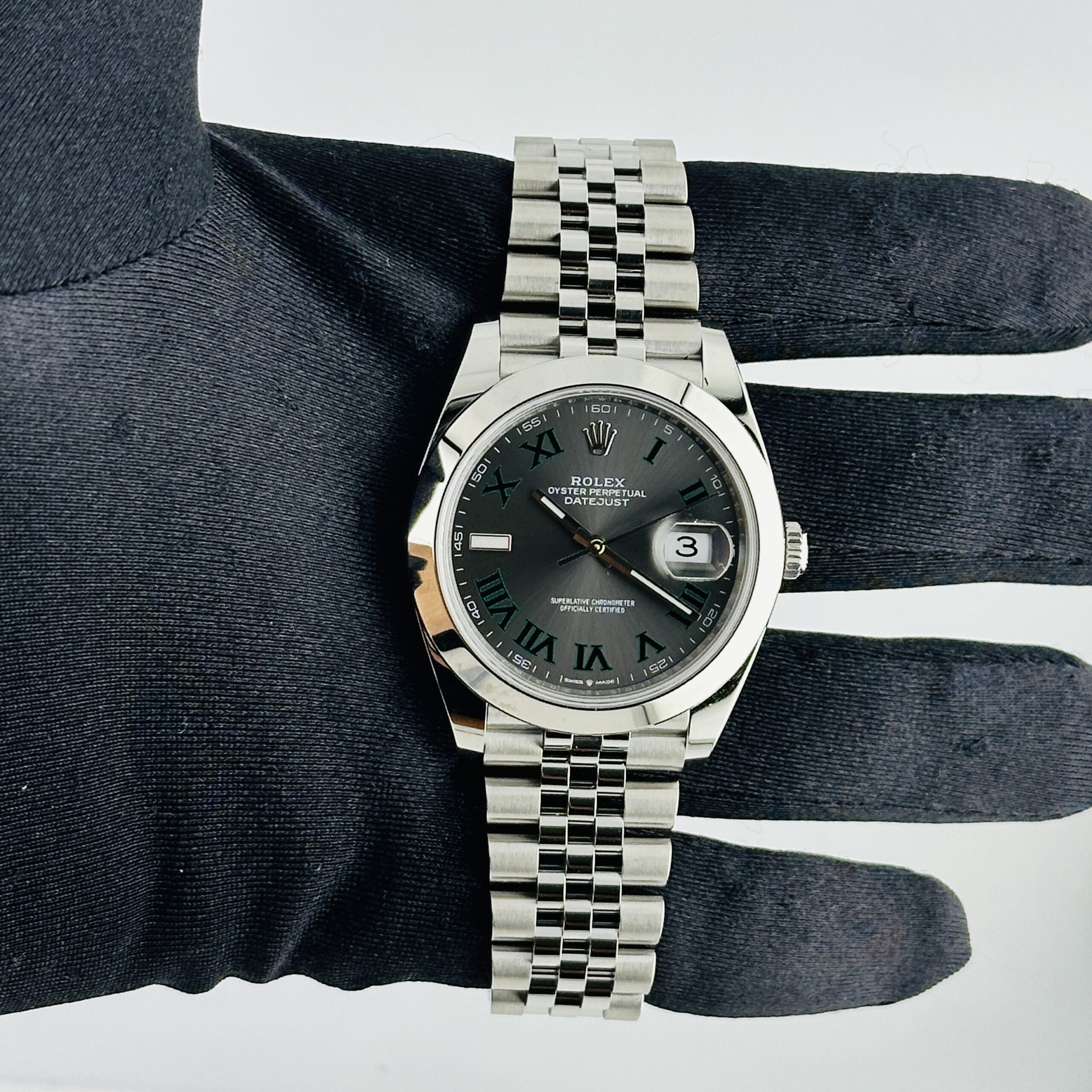 Rolex Datejust Slate Green Roman / Wimbledon Dial on Jubilee Ref 126300 with New Style Card Green 2025