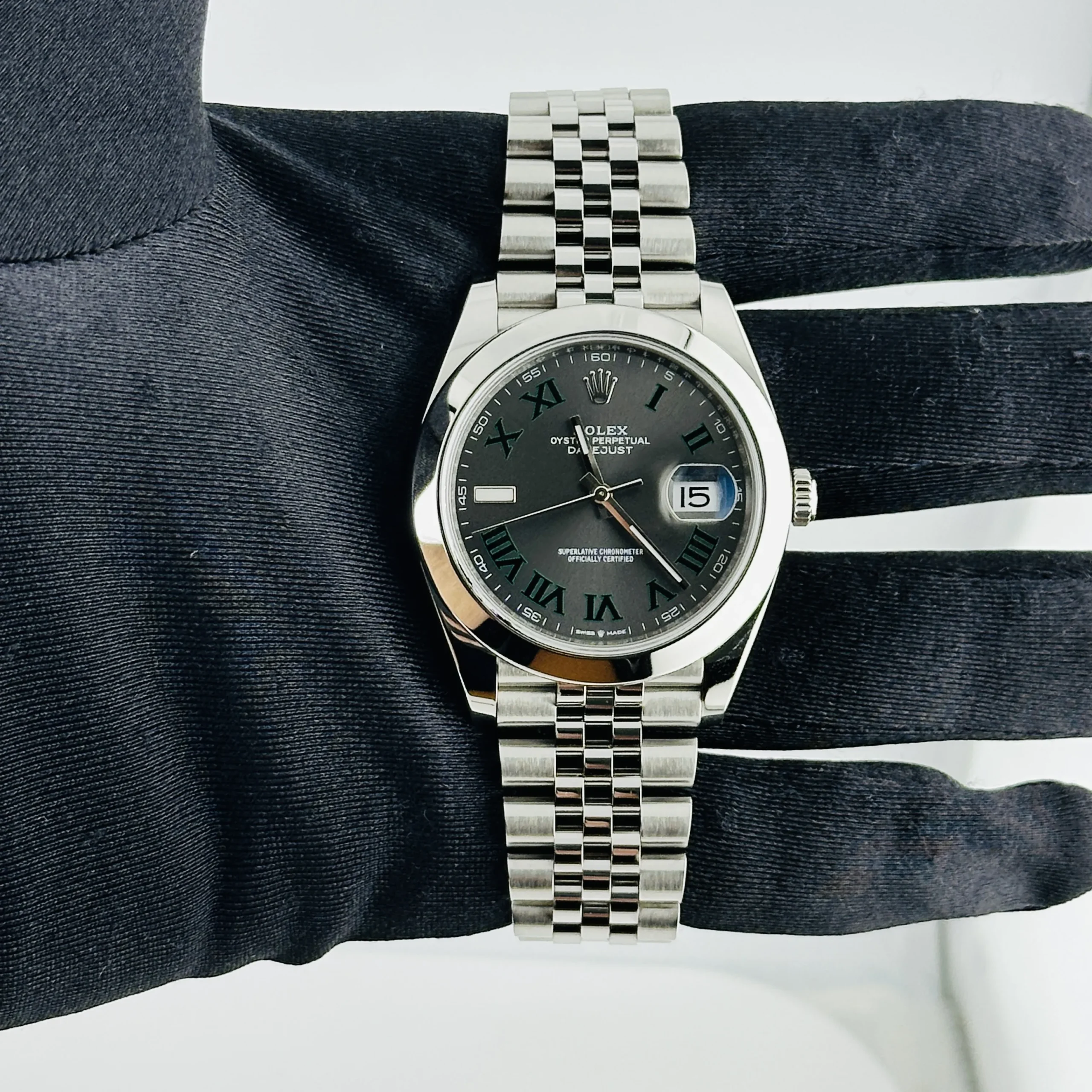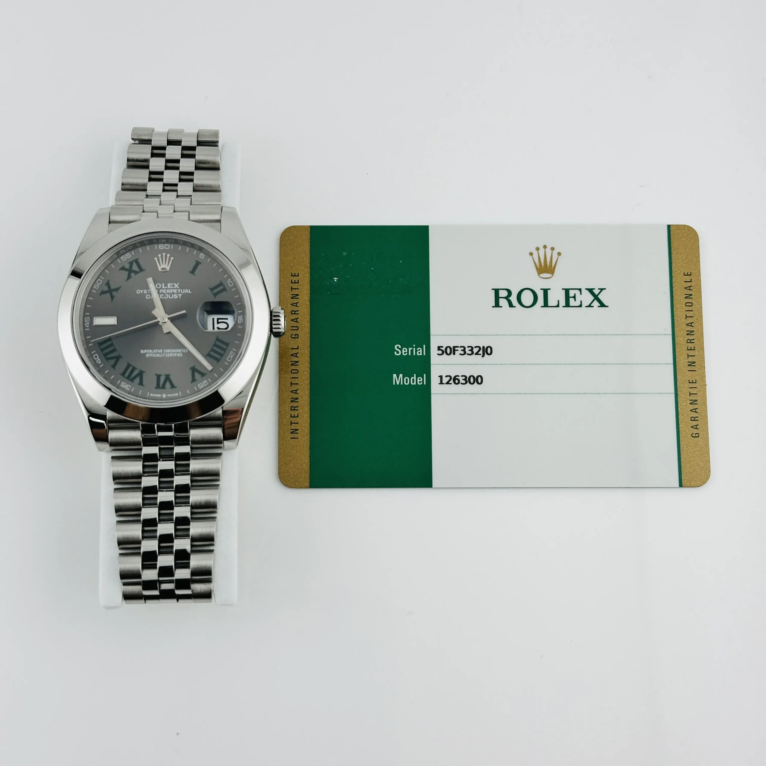 Rolex Datejust Slate Green Roman / Wimbledon Dial on Jubilee Ref 126300 with New Style Card White 2018