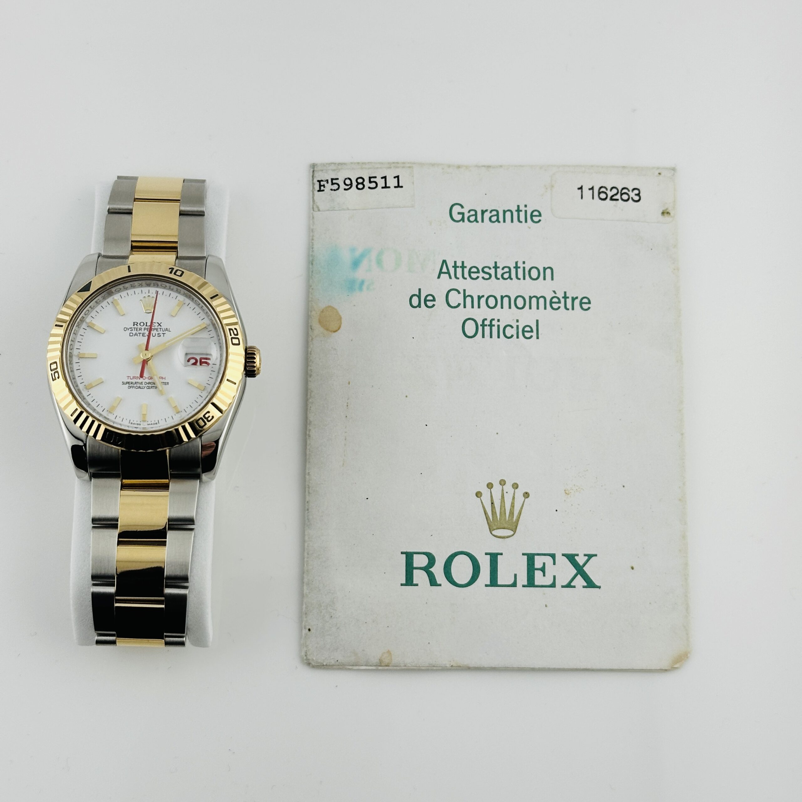 Rolex Datejust Turn-o-Graph White Dial on Oyster Ref 116263 with Papers 2004