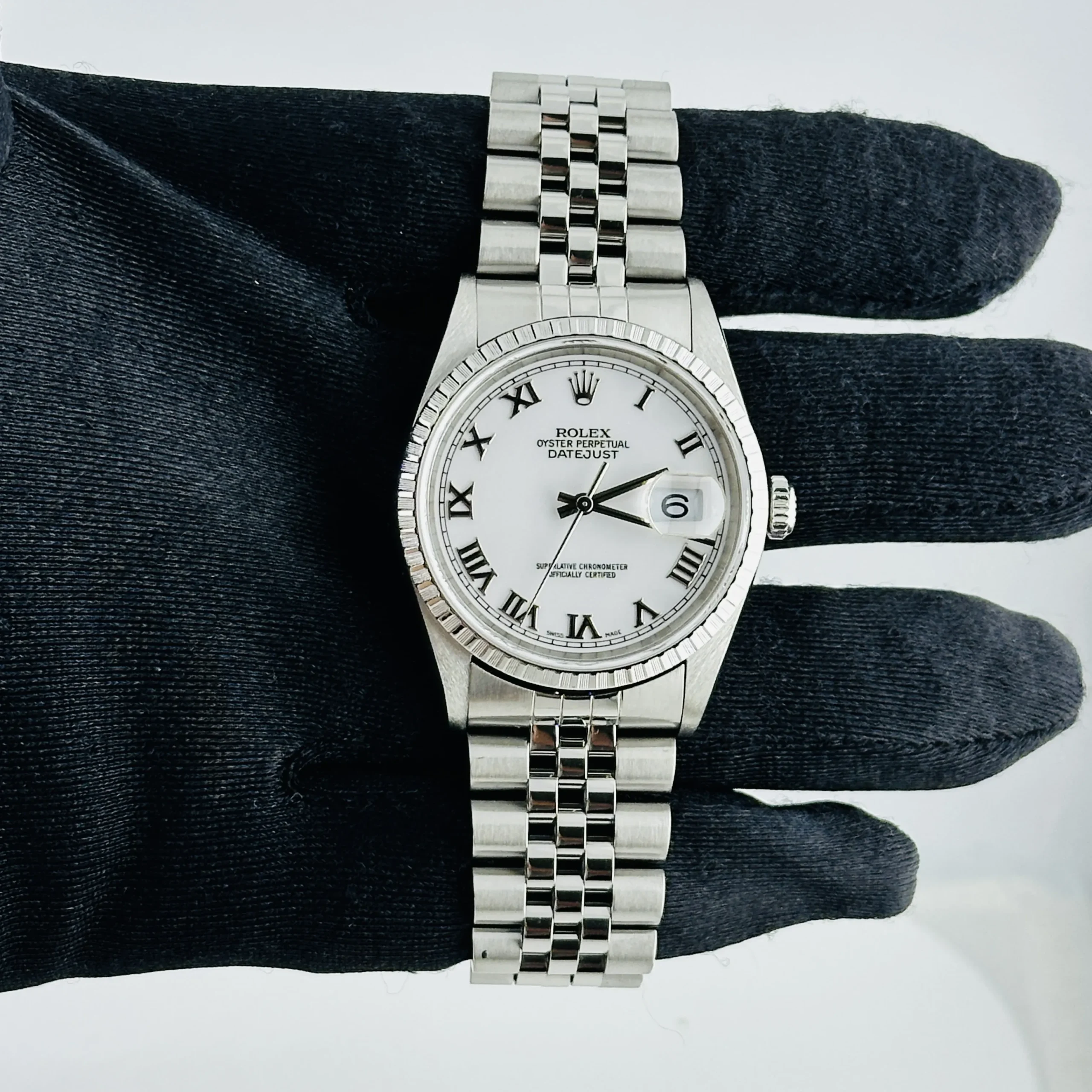 Rolex Datejust White Roman Dial on D Link Jubilee Ref 16220