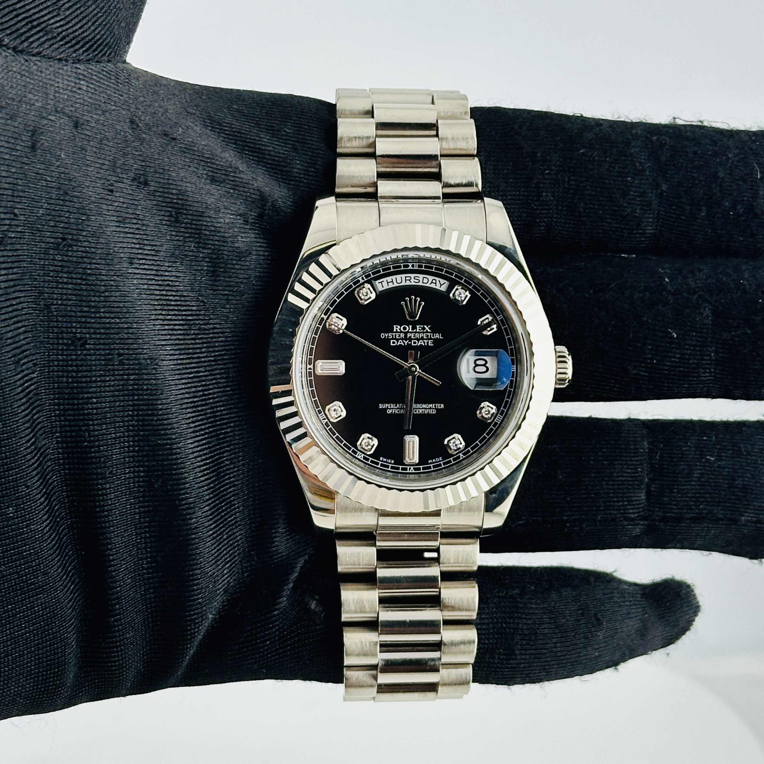 Rolex Day-Date Black Diamond Dial on President Ref 218239 with Card Old Green 2010