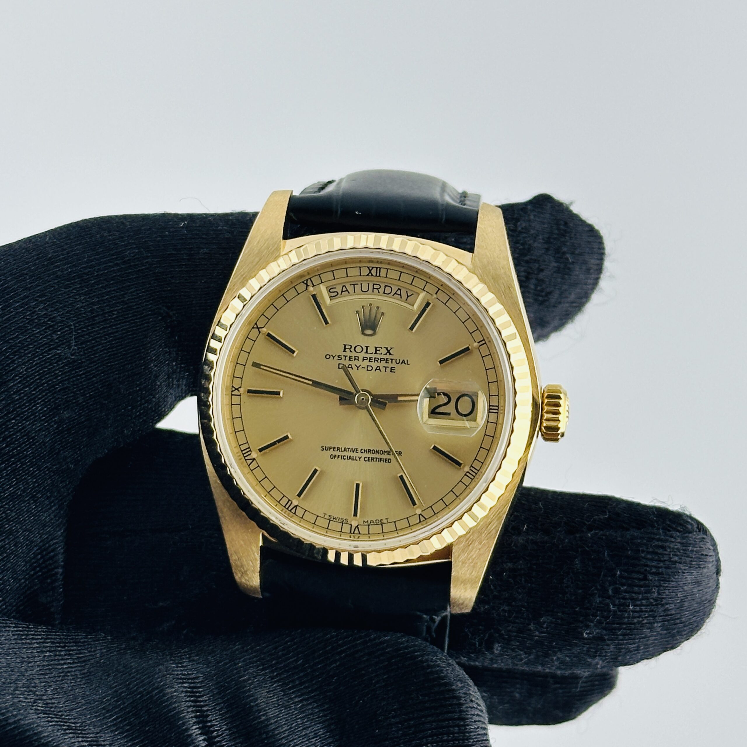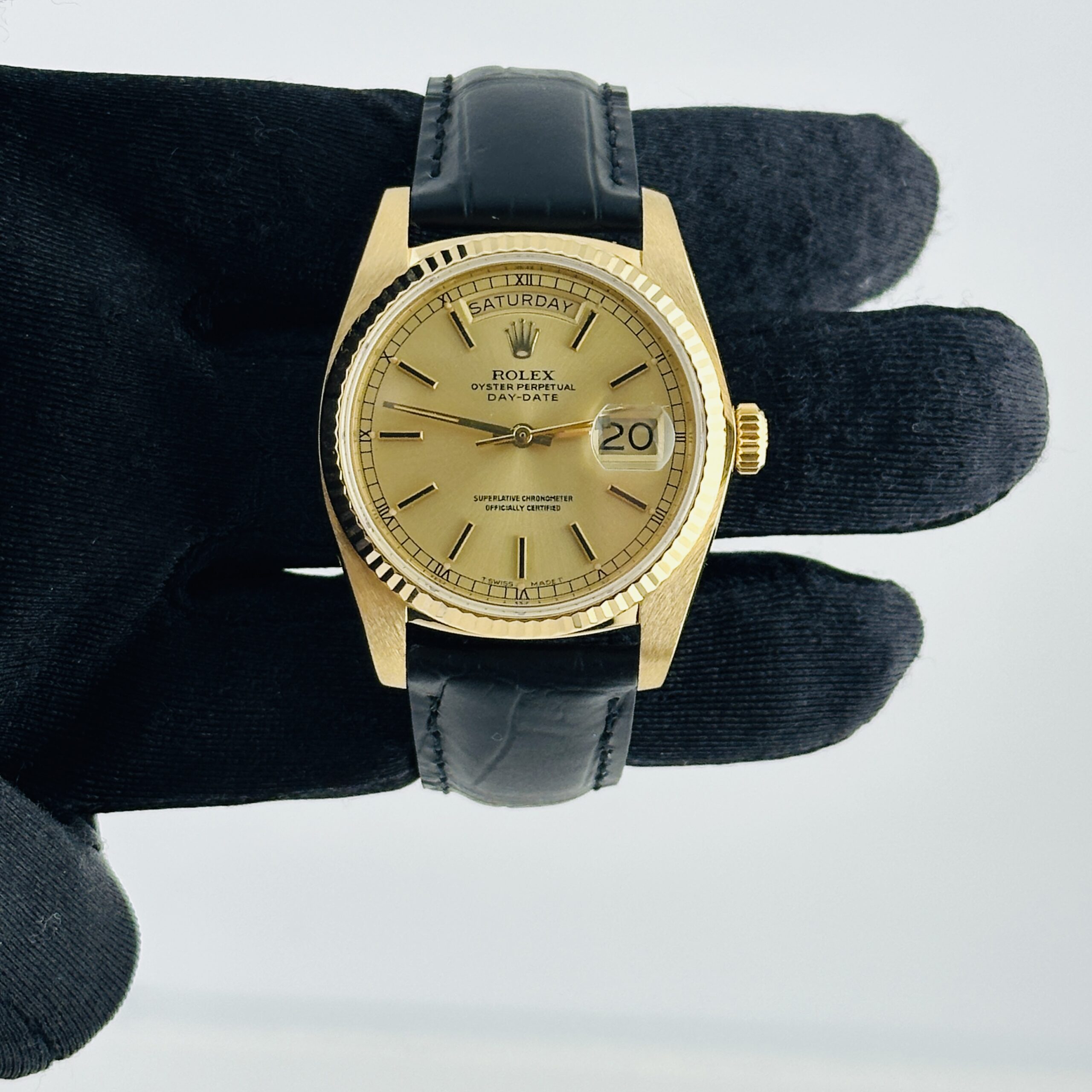 Rolex Day Date Champagne Stick Dial on Am Leather Ref 18038
