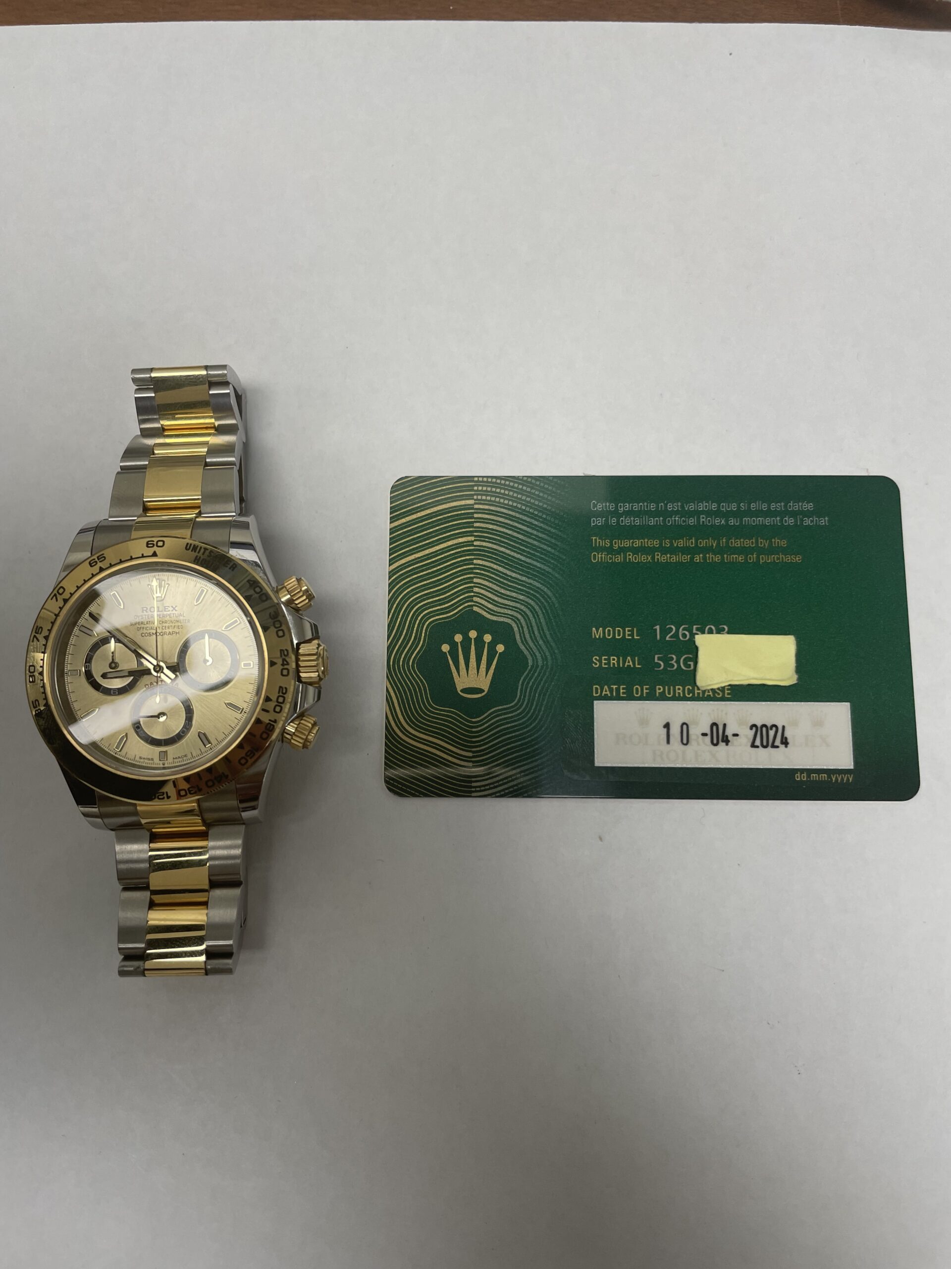 Rolex Daytona Gold Dial on Oyster Ref 126503 with New Style Card Green 2024