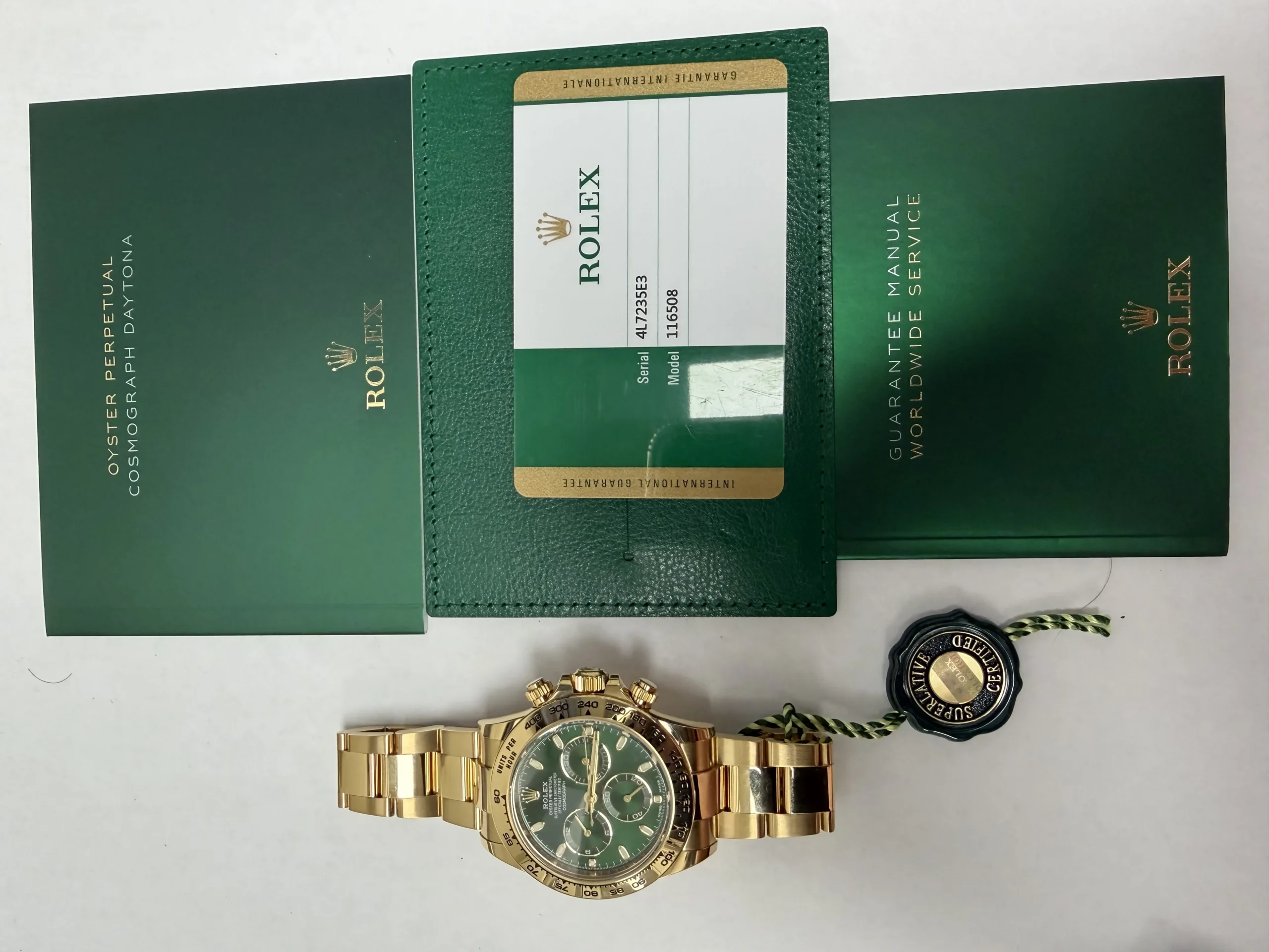 Rolex Daytona Green Stick Dial on Oyster Ref 116508 with New Style Card White 2018