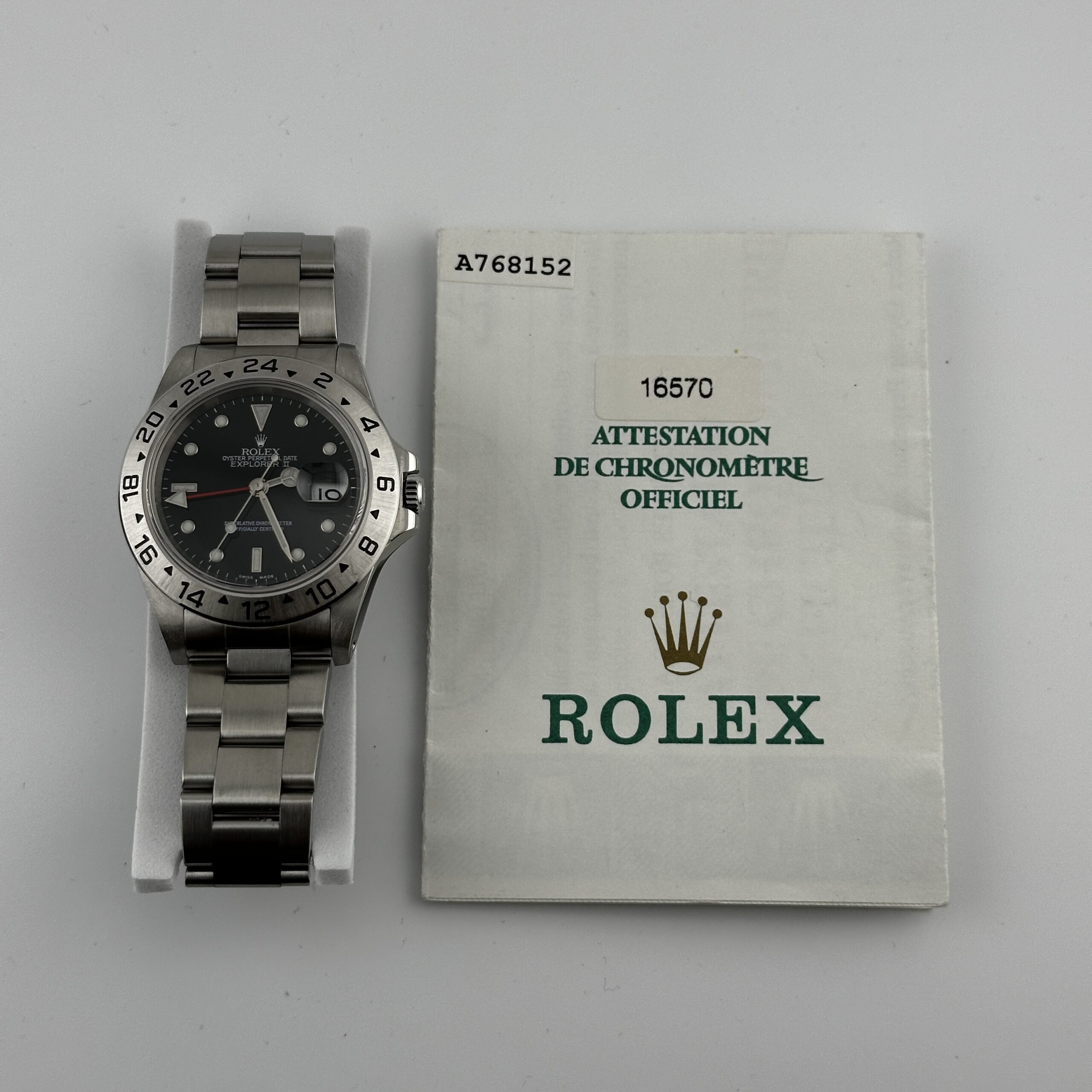 Rolex Explorer II Black Dial on Oyster Ref 16570 with Papers