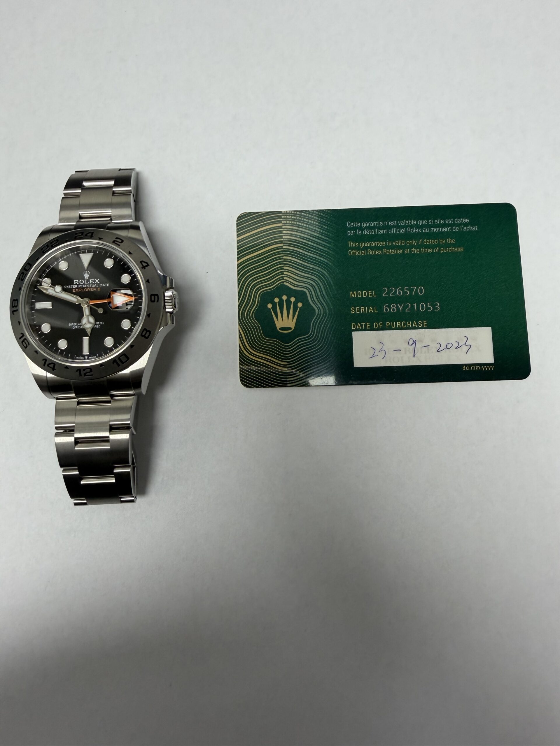 Rolex Explorer II Black Dial on Oyster Ref 226570 with New Style Card Green 2023