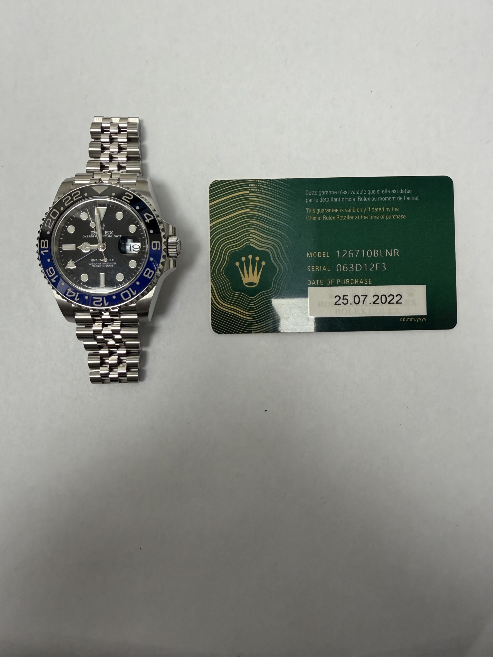 Rolex GMT-Master II Batgirl Black Dial on Jubilee Ref 126710BLNR with New Style Card Green 2022