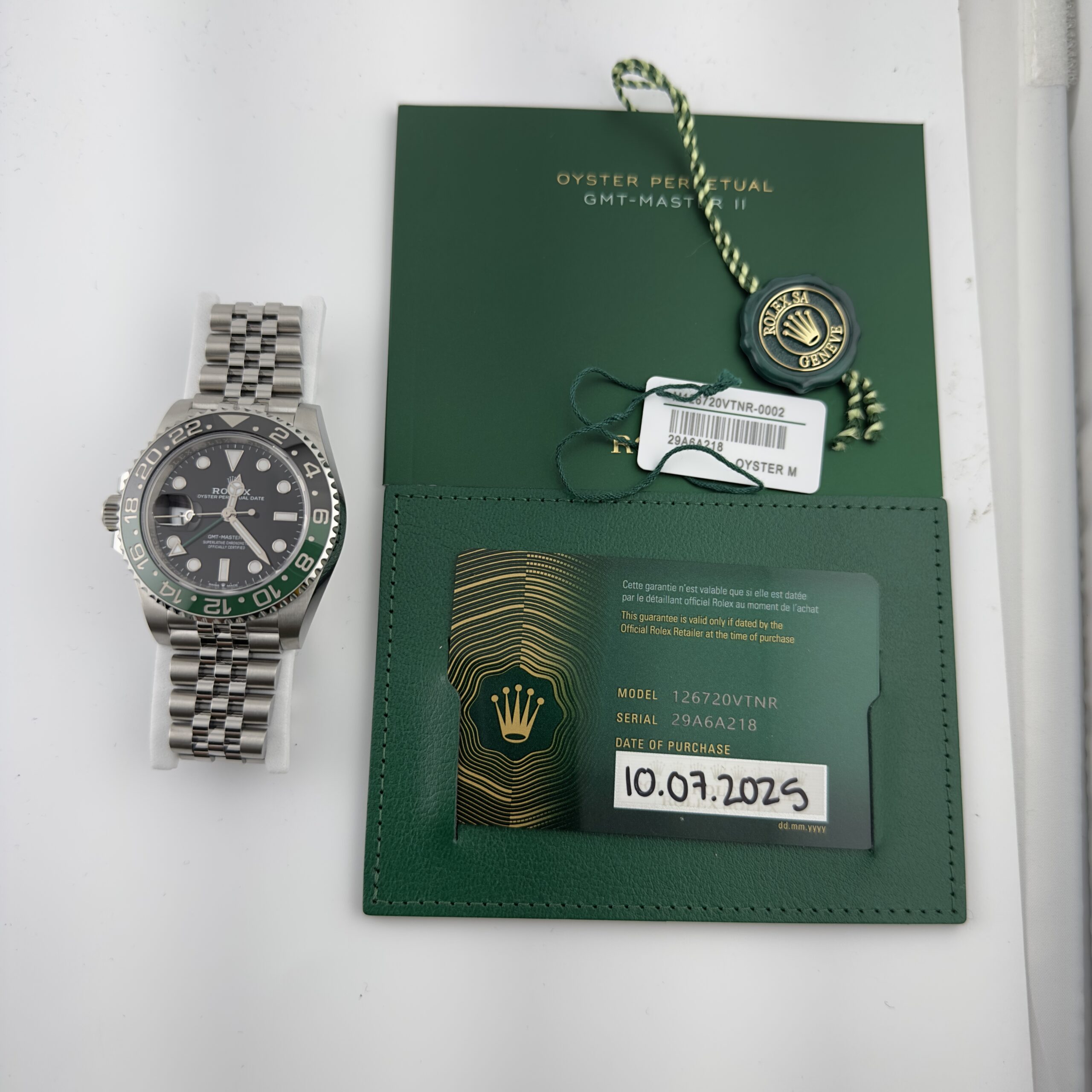 Rolex GMT-Master II Sprite Black Dial on Jubilee Ref 126720VTNR with New Style Card Green 2025