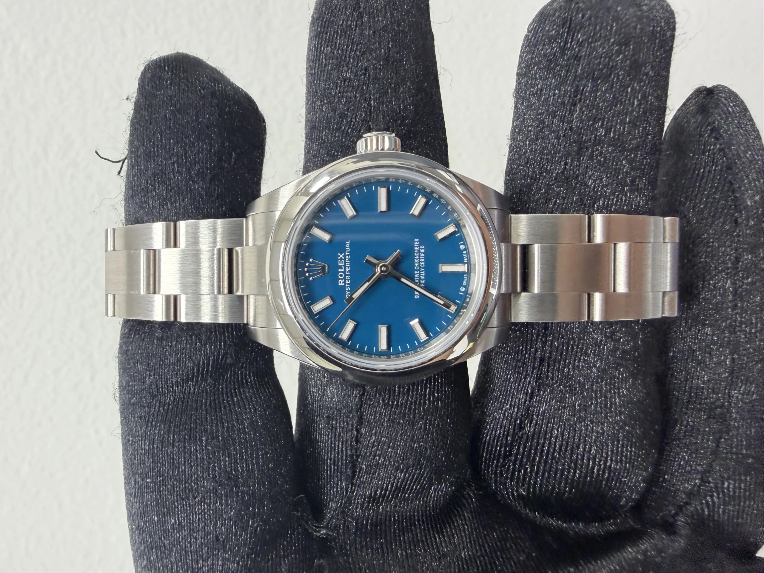 Rolex Oyster Perpetual 28 Med Blue Dial on Oyster Ref 276200 with New Style Card Green 2025
