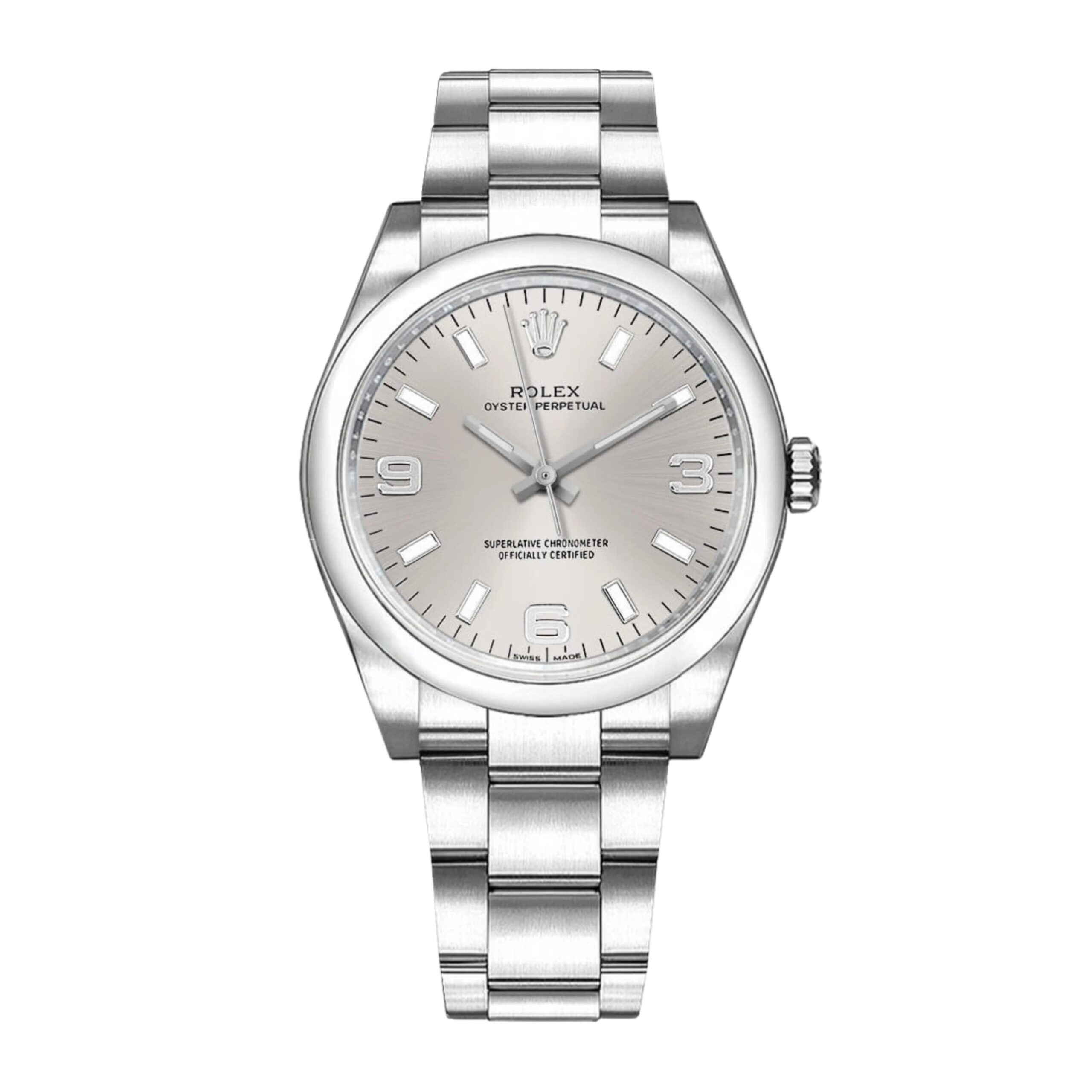 Rolex Oyster Perpetual 34 Silver Stick Dial on Oyster Ref 114200