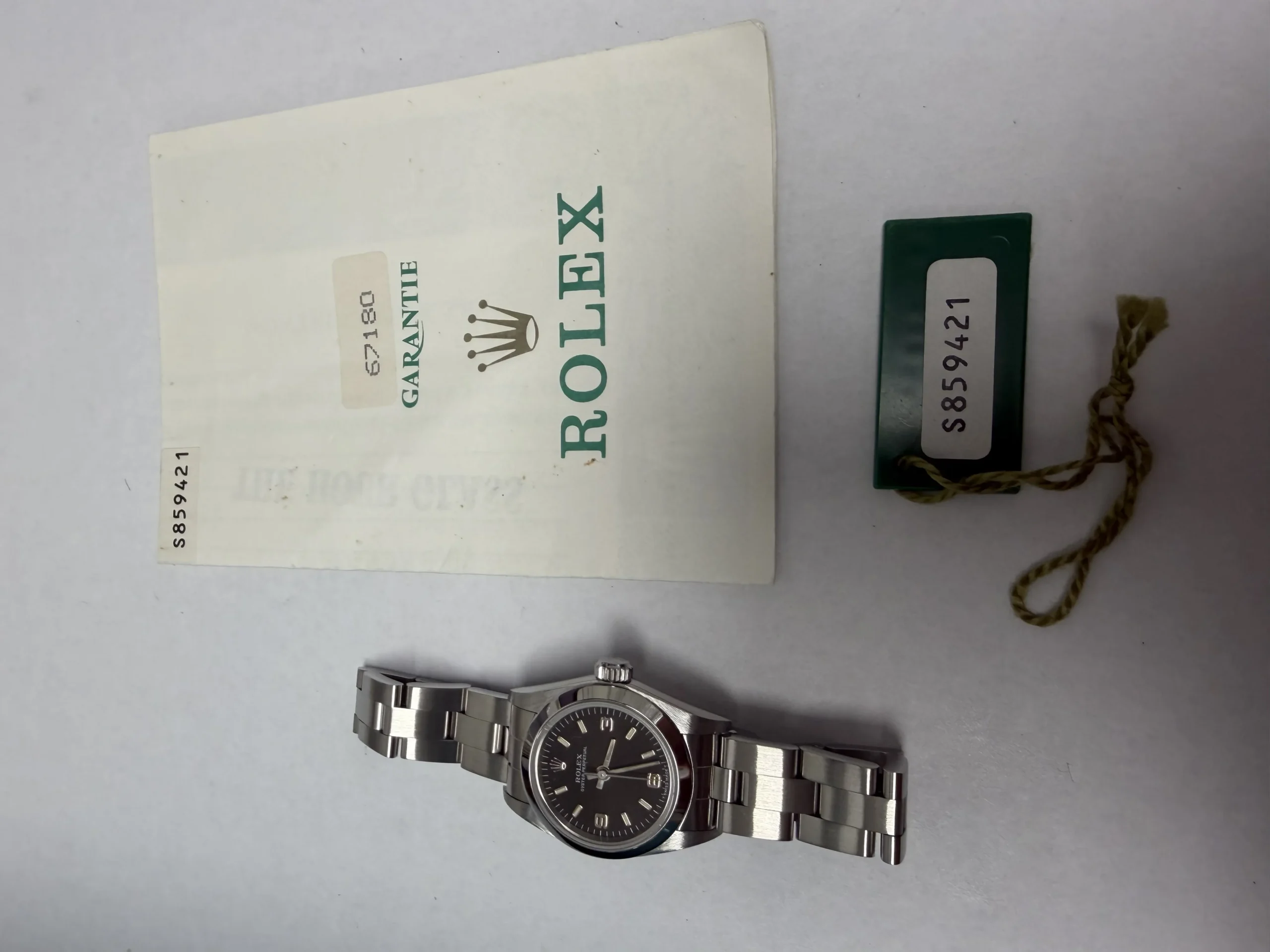 Rolex Oyster Perpetual Black Dial on Oyster Ref 67180 with Papers 1995