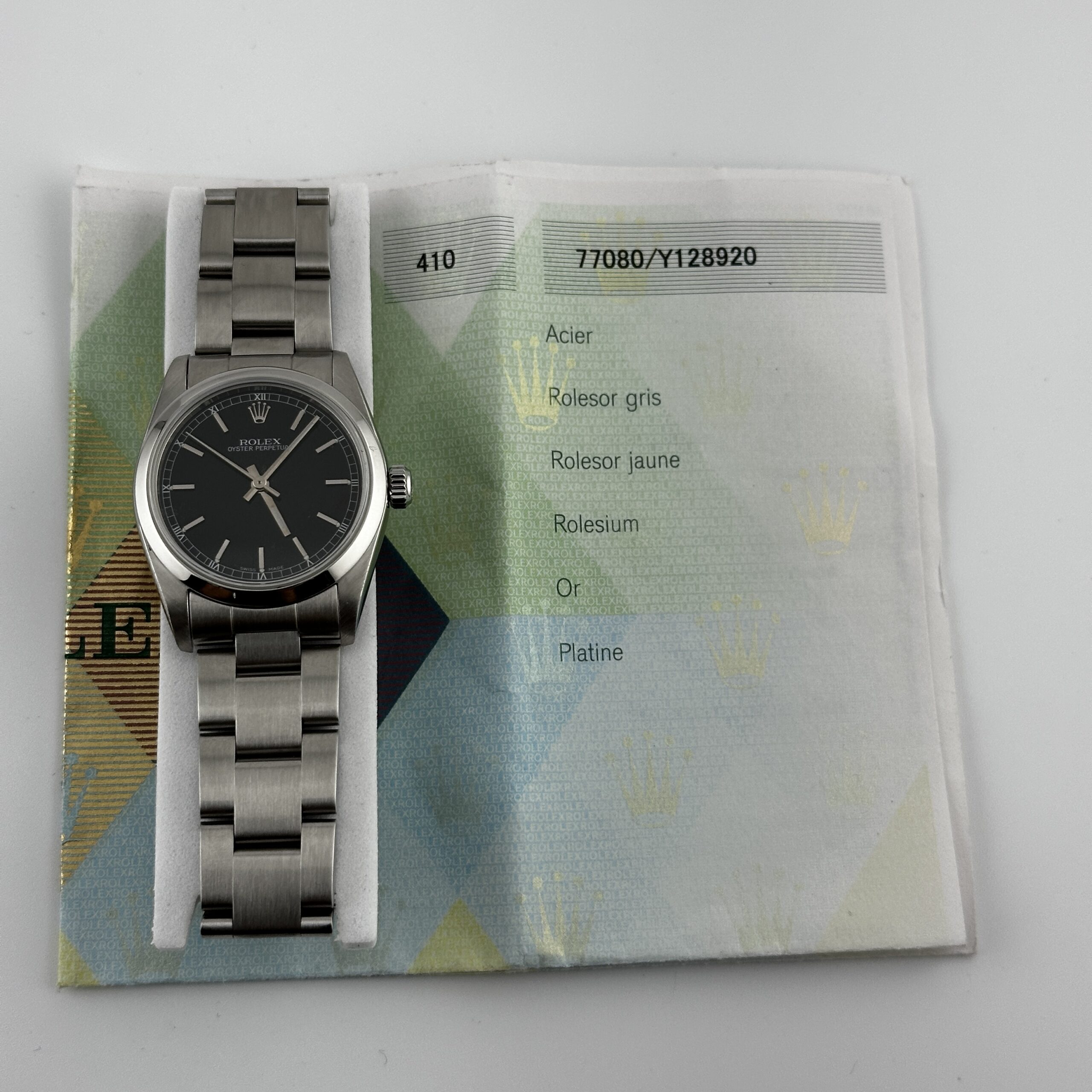 Rolex Oyster Perpetual Black Dial on Oyster Ref 77080 with Papers