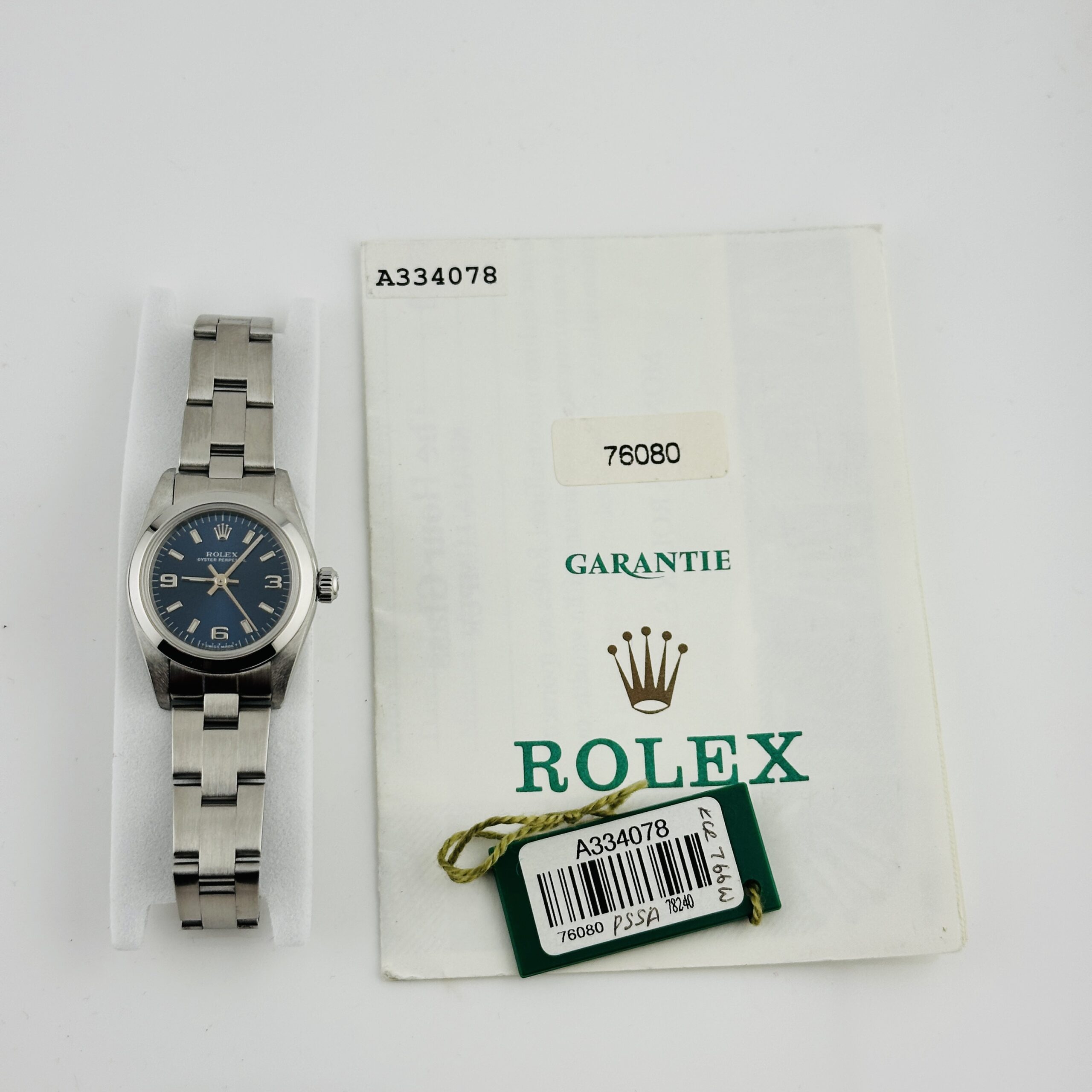 Rolex Oyster Perpetual Blue Dial on Oyster Ref 76080 with Papers 2000