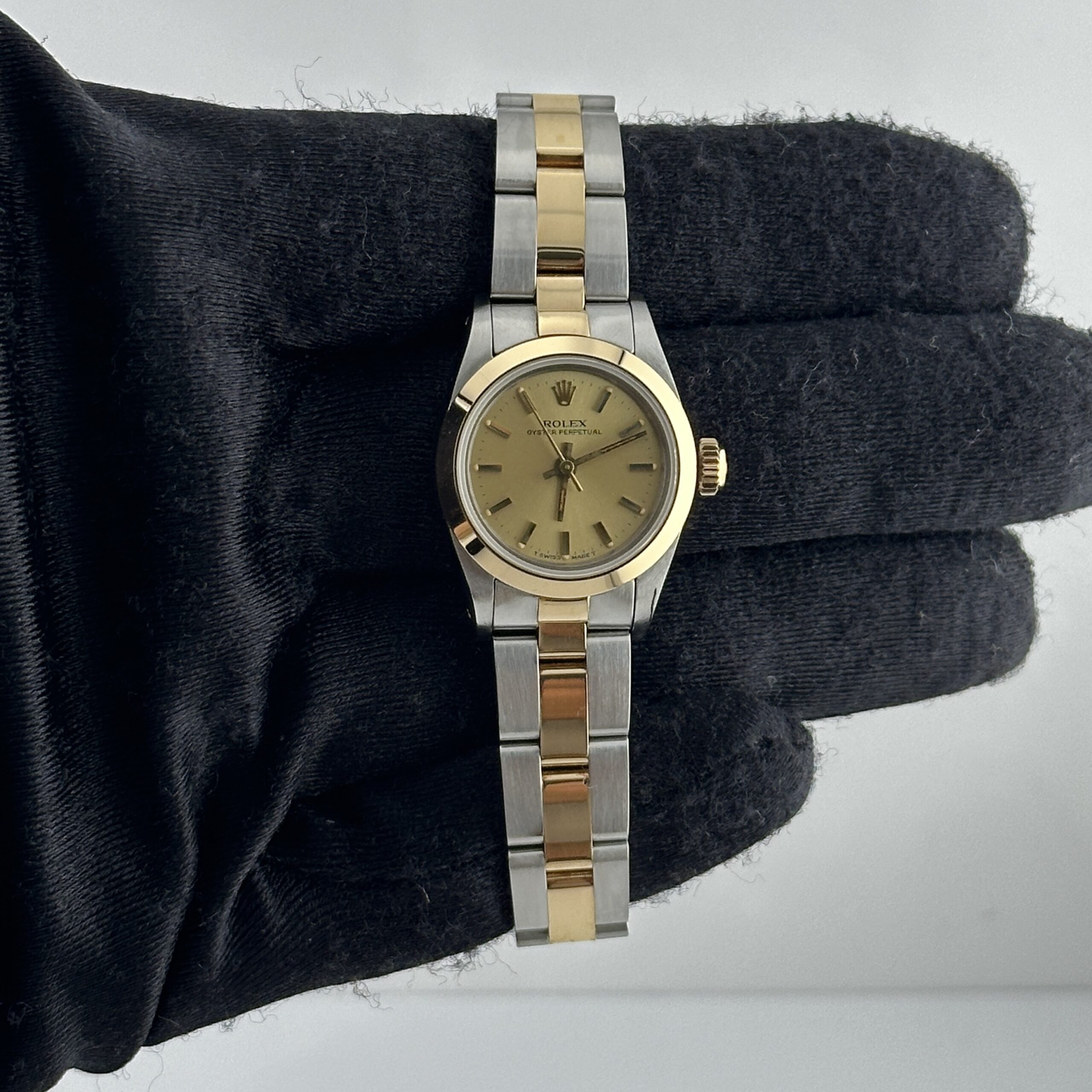 Rolex Oyster Perpetual Champagne Stick Dial on Oyster Ref 67183 with Papers 1985