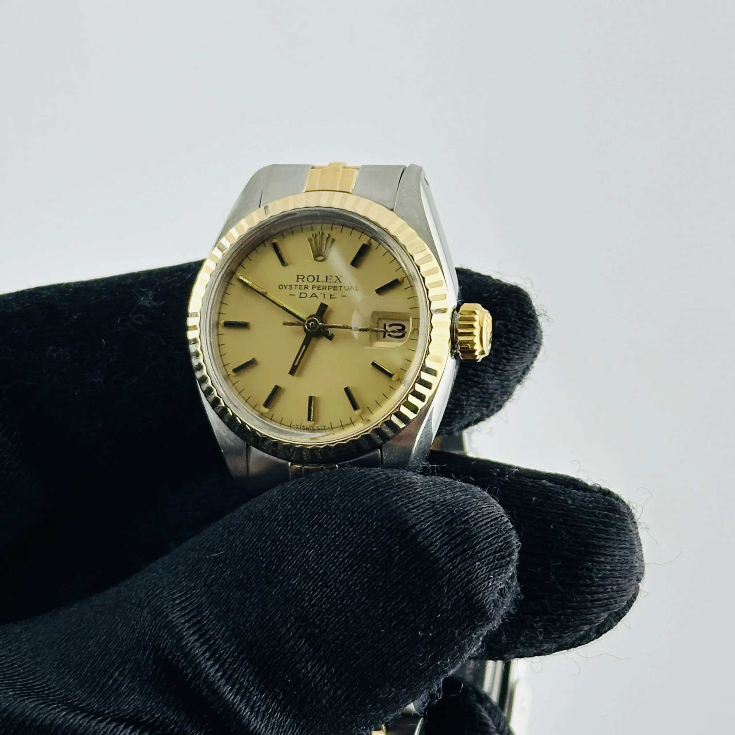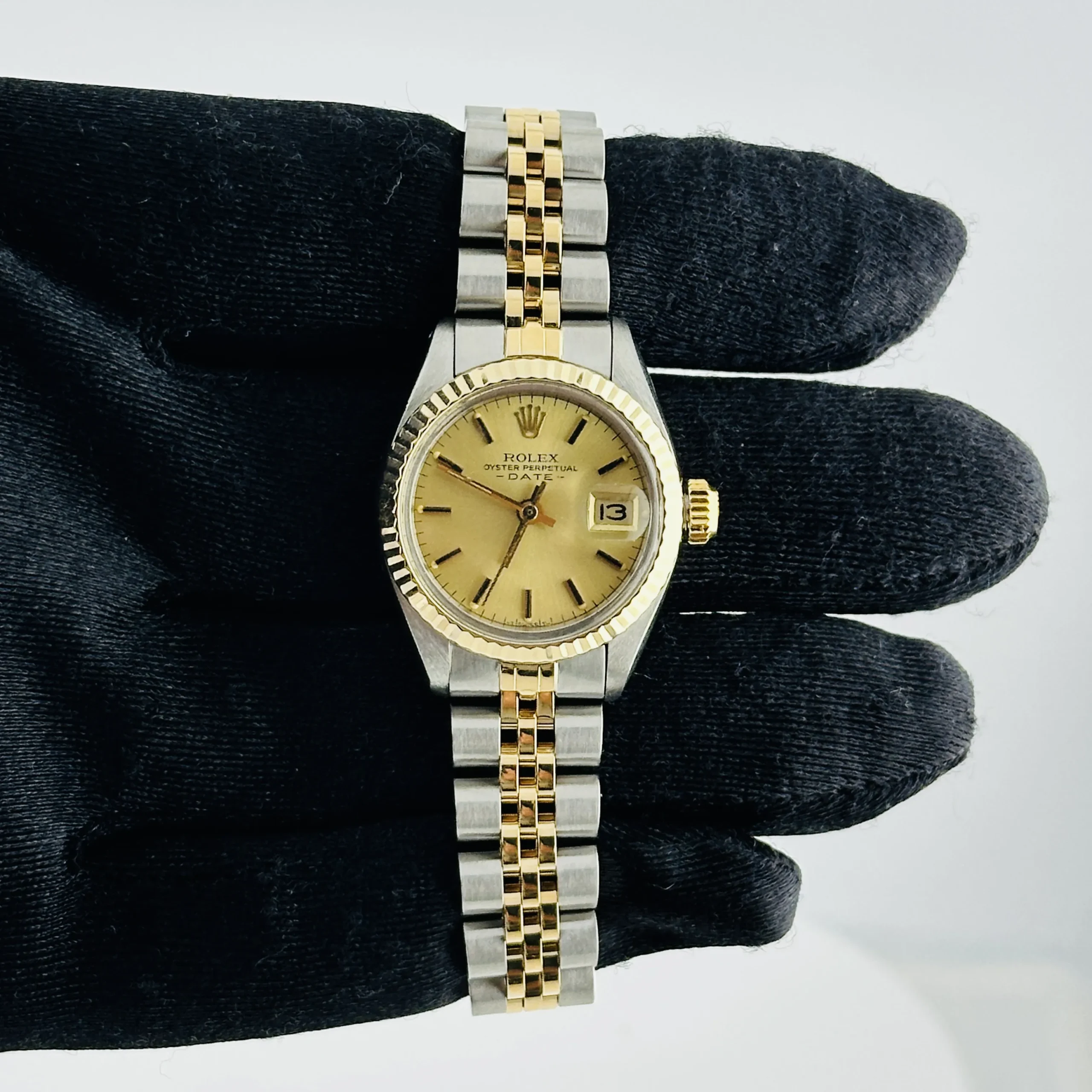 Rolex Oyster Perpetual Date Champagne Stick Dial on D Link Jubilee Ref 6917