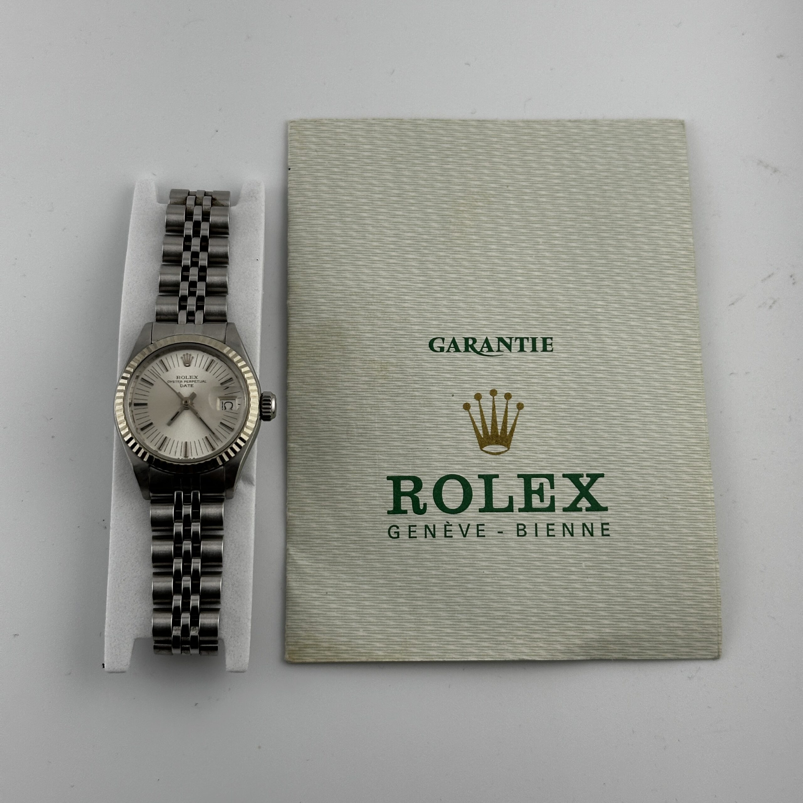 Rolex Oyster Perpetual Date Silver Stick Dial on Jubilee Ref 6917 with Papers