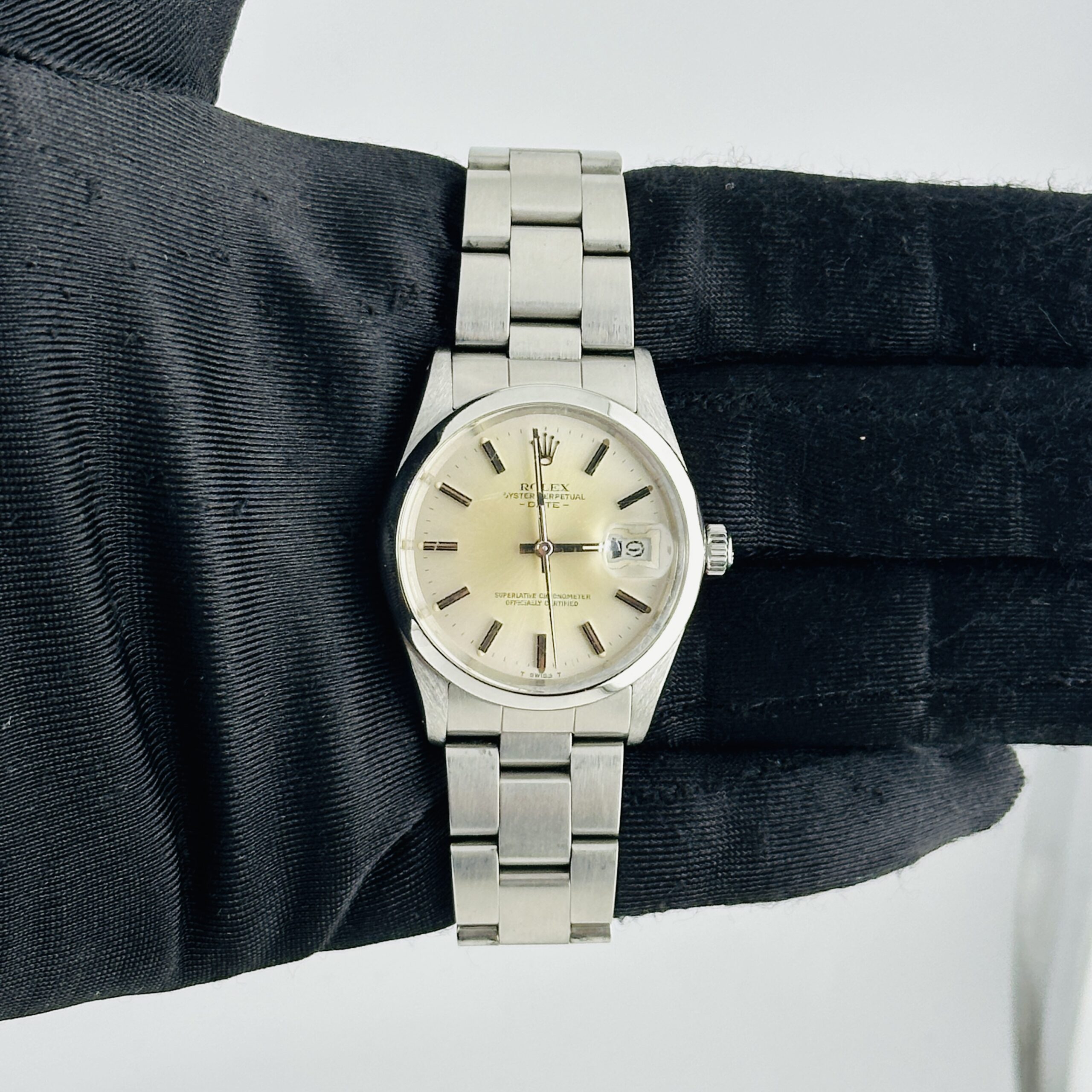 Rolex Oyster Perpetual Date Silver Stick Dial on Oyster Ref 15000