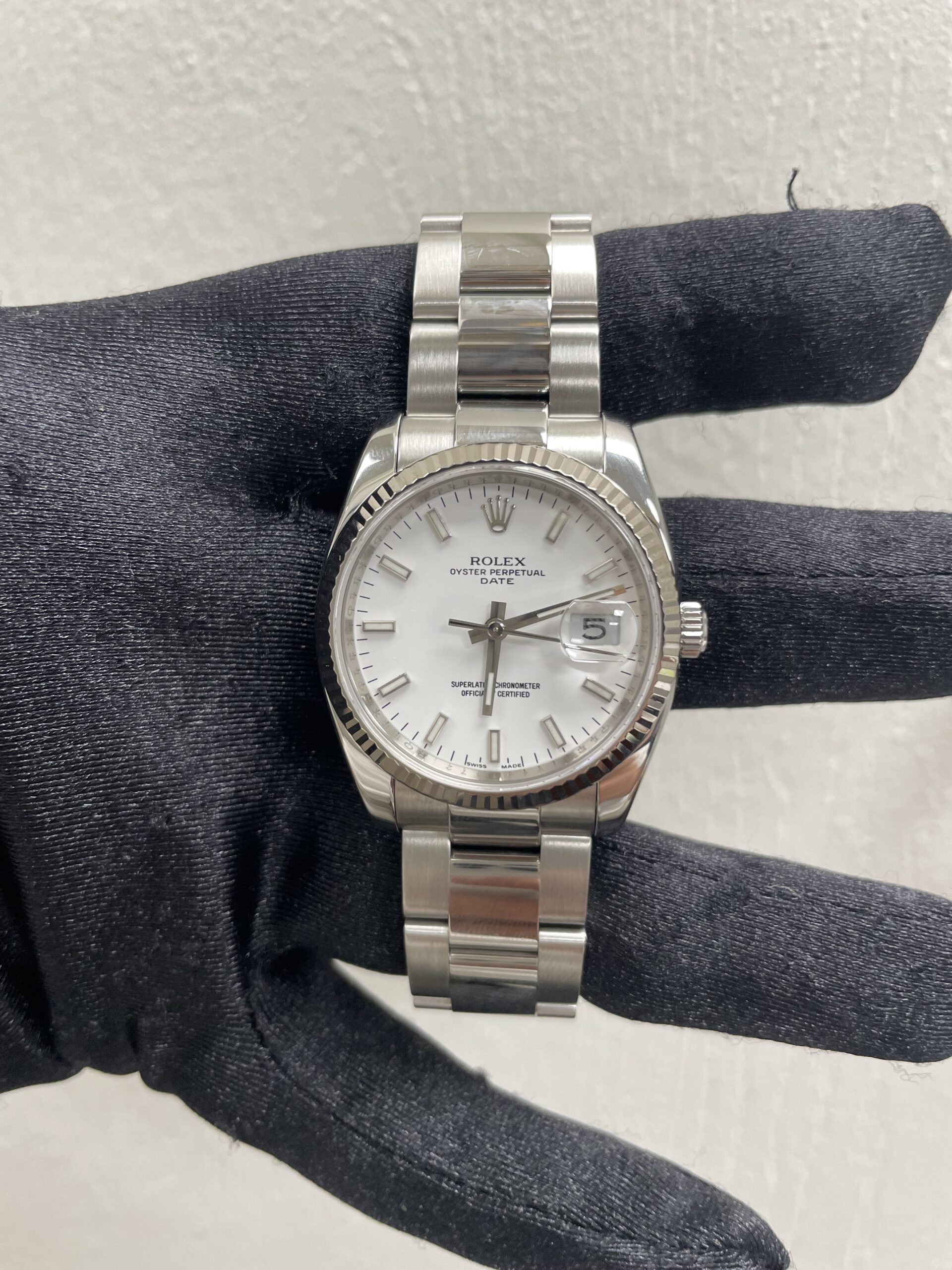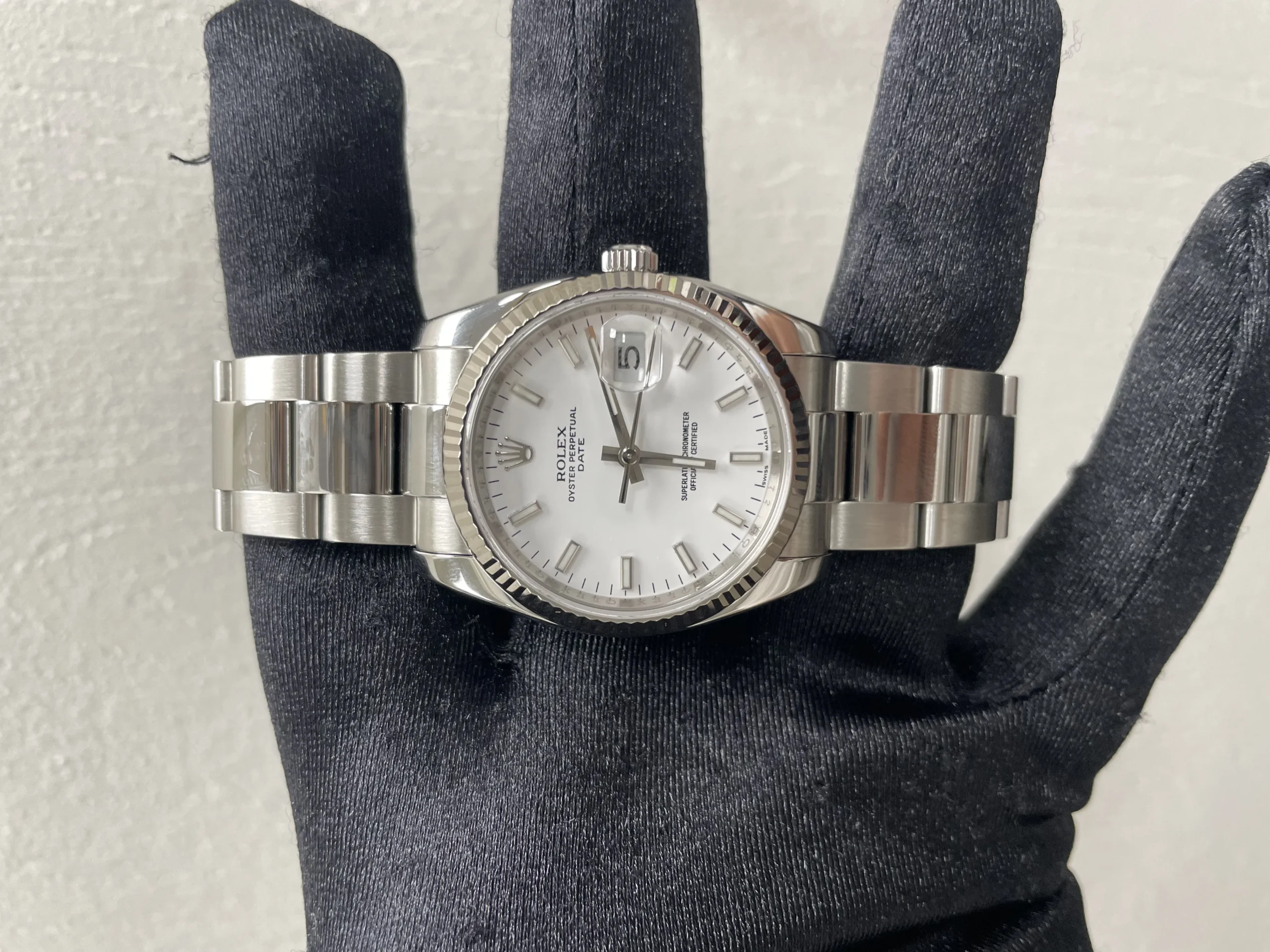 Rolex Oyster Perpetual Date White Dial on Oyster Ref 115234 with Card Old Green 2009