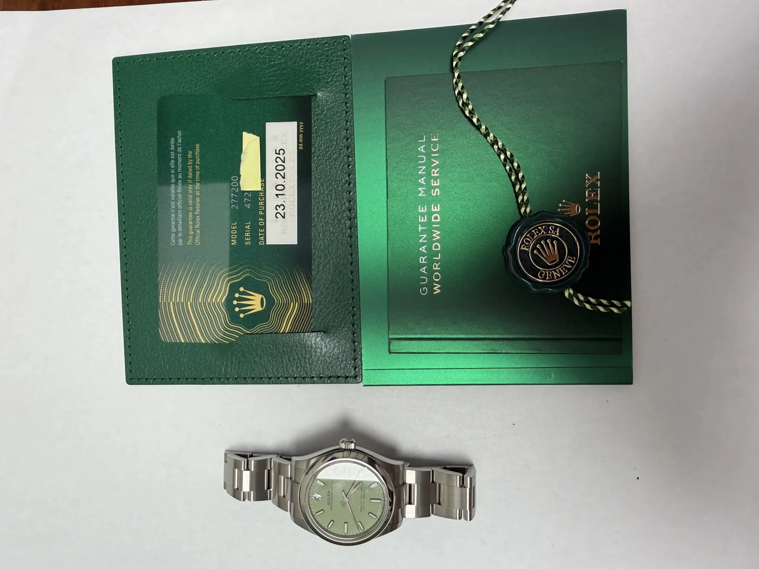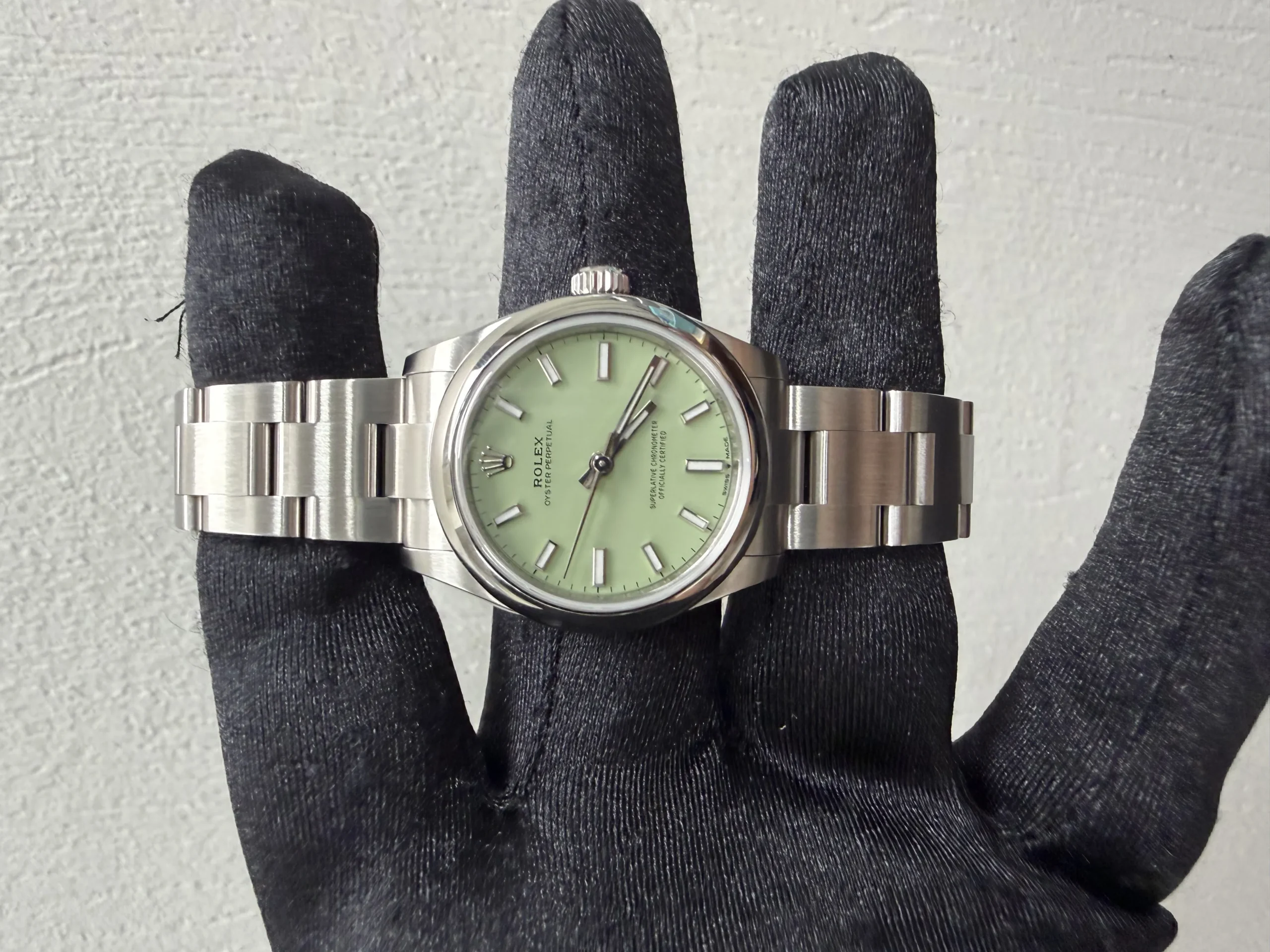 Rolex Oyster Perpetual Pistachio Dial on Oyster Ref 277200 with New Style Card Green 2025