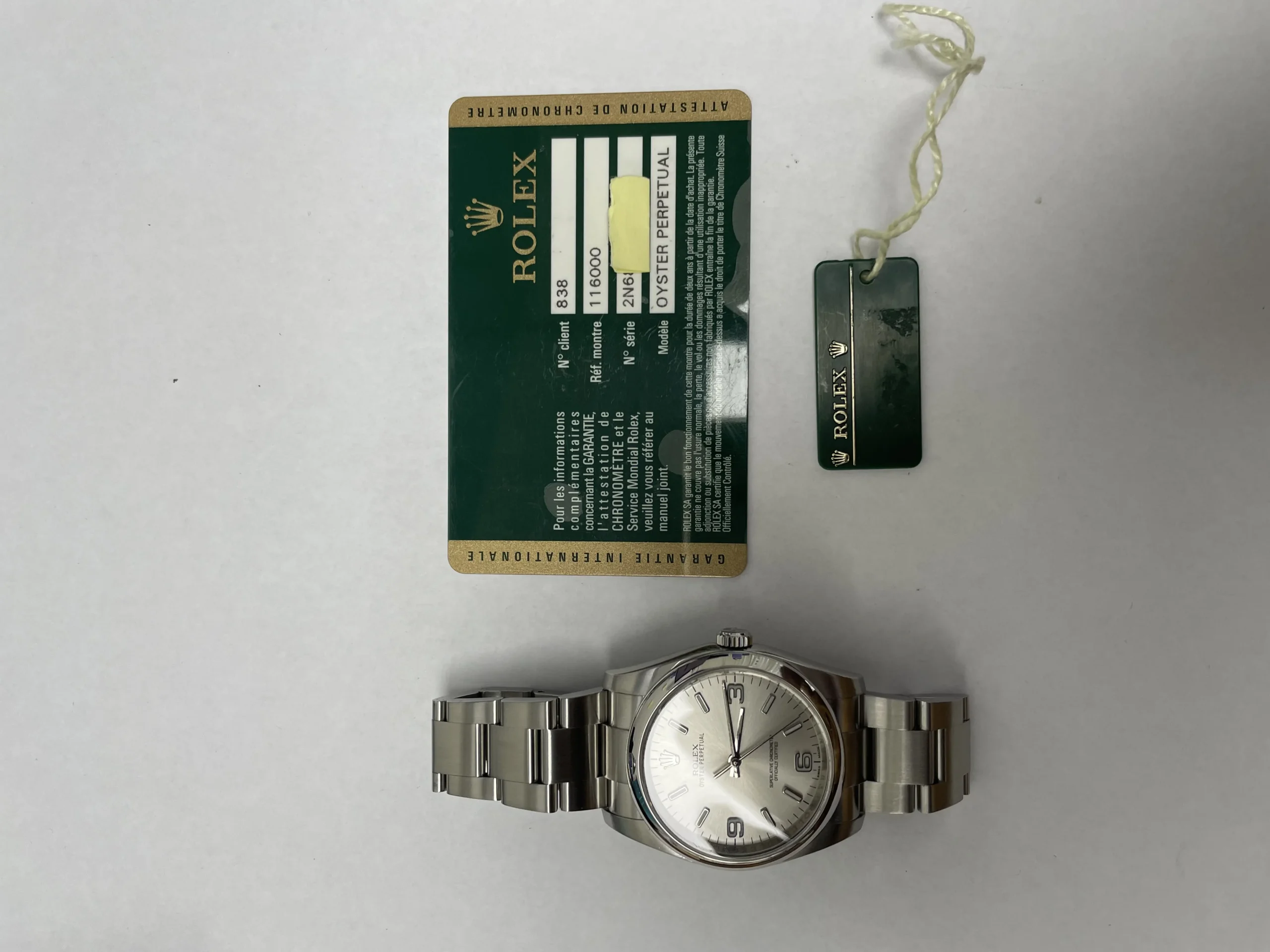 Rolex Oyster Perpetual Silver Dial on Oyster Ref 116000 with Card Old Green 2015