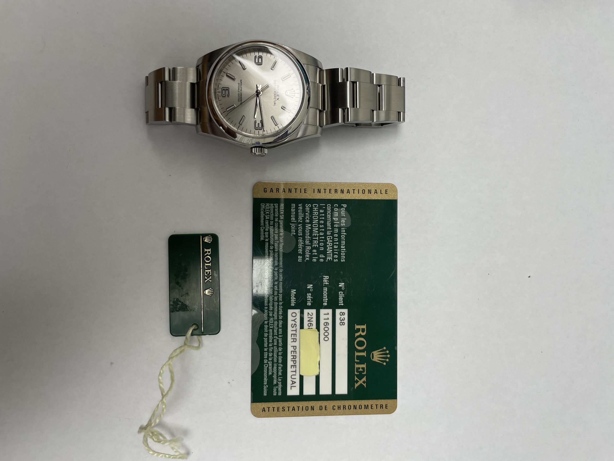 Rolex Oyster Perpetual Silver Dial on Oyster Ref 116000 with Card Old Green 2015