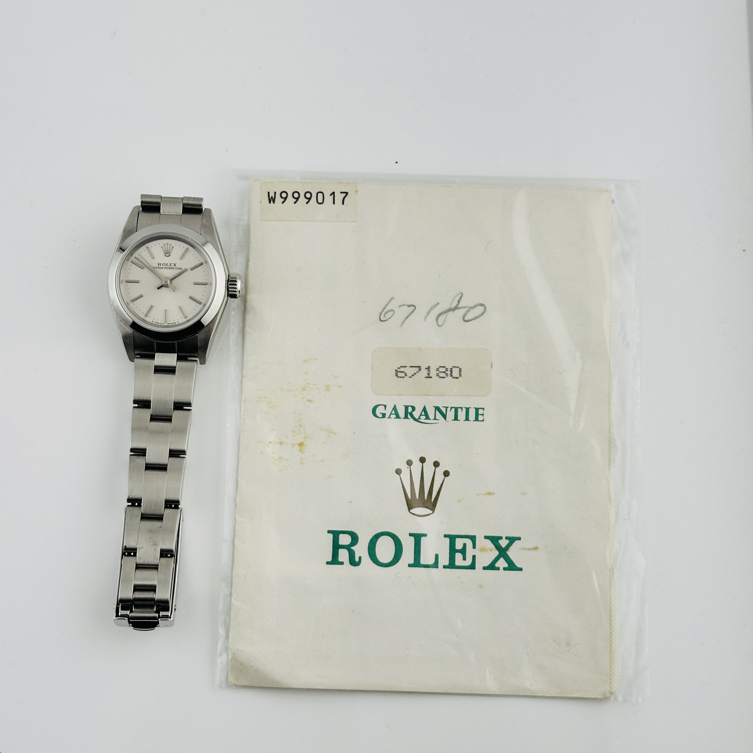 Rolex Oyster Perpetual Silver Dial on Oyster Ref 67180 with Papers 1996