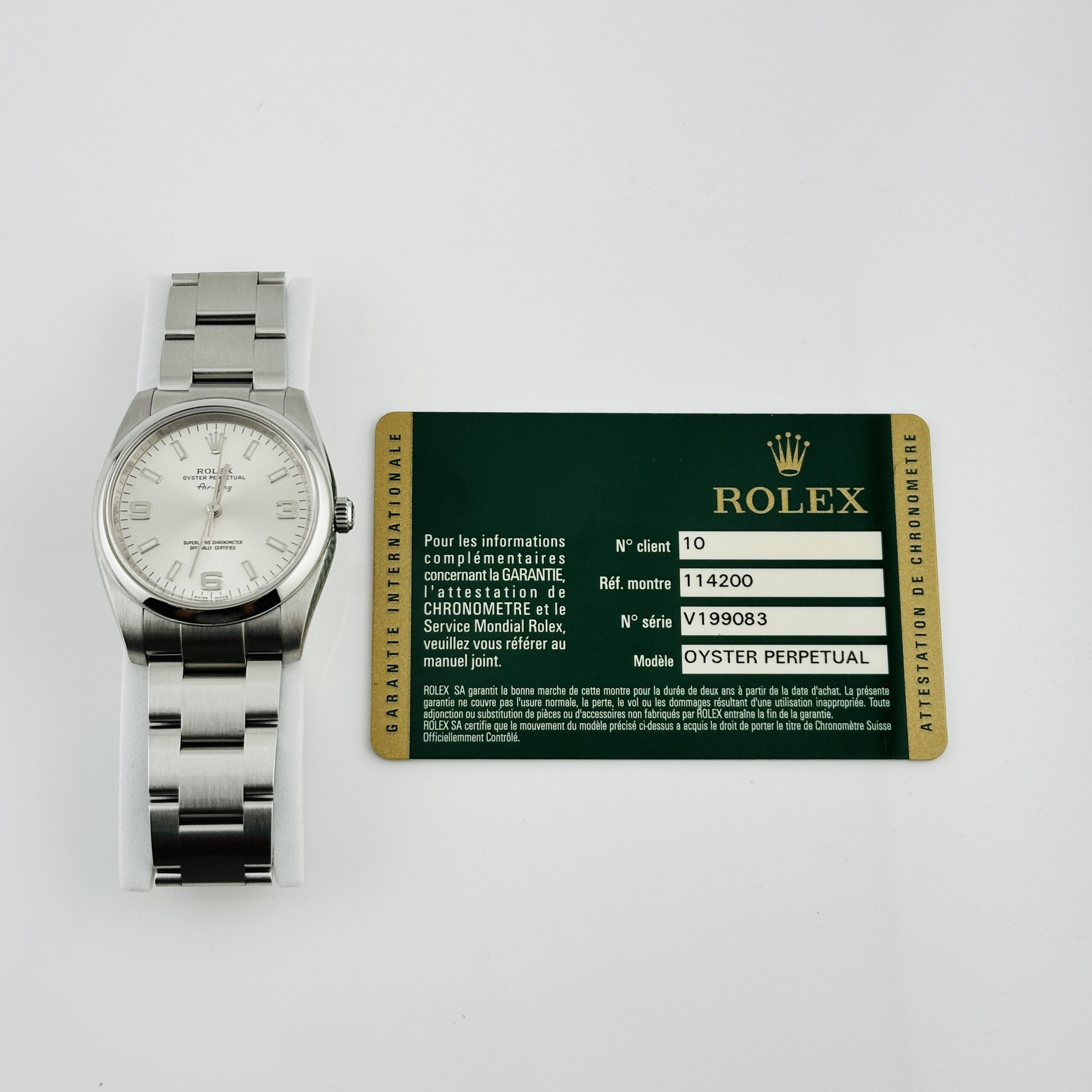 Rolex Oyster Perpetual Silver Stick 369 Dial on Oyster Ref 114200 with Card Old Green 2010