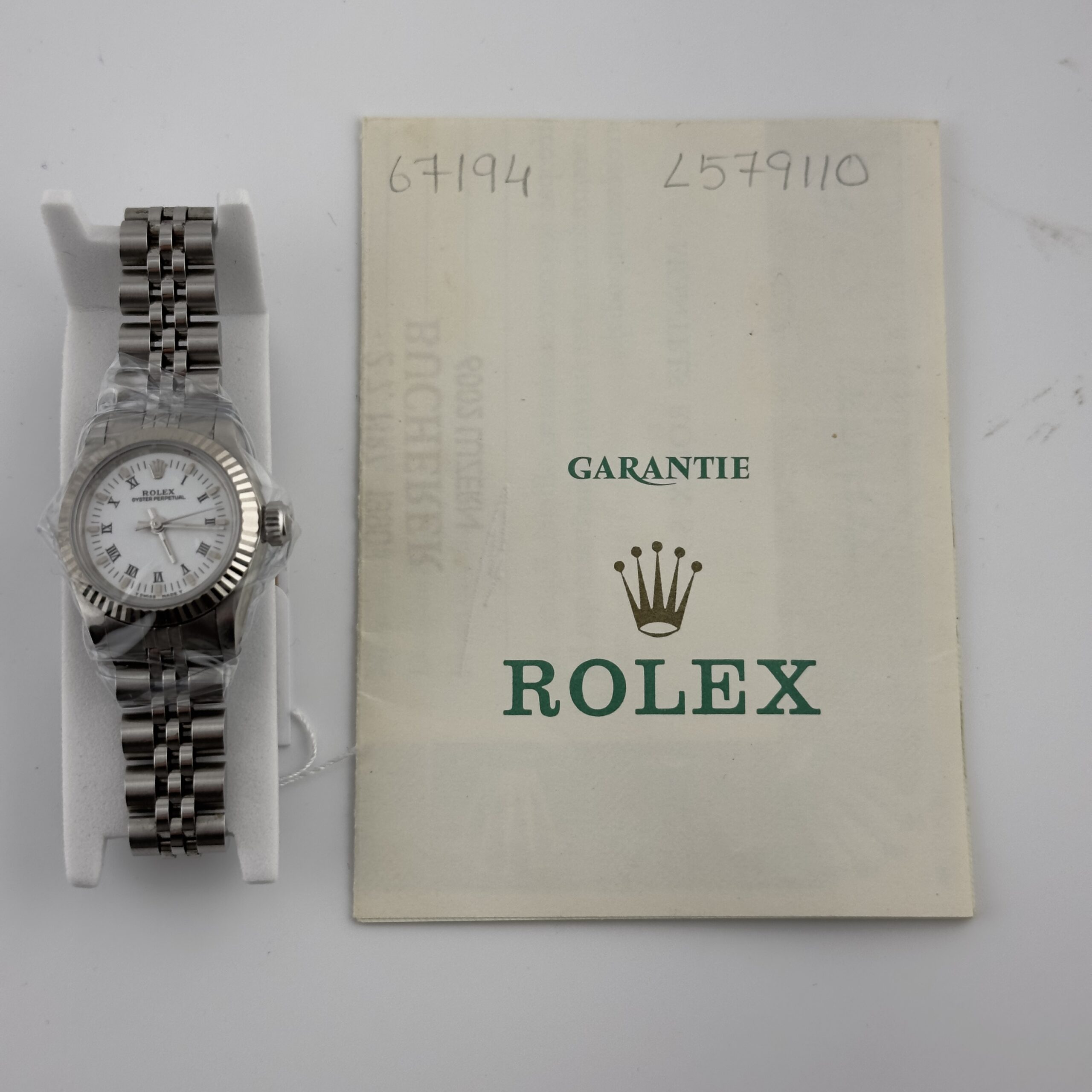 Rolex Oyster Perpetual White Roman Dial on Jubilee Ref 67194 with Papers 1990