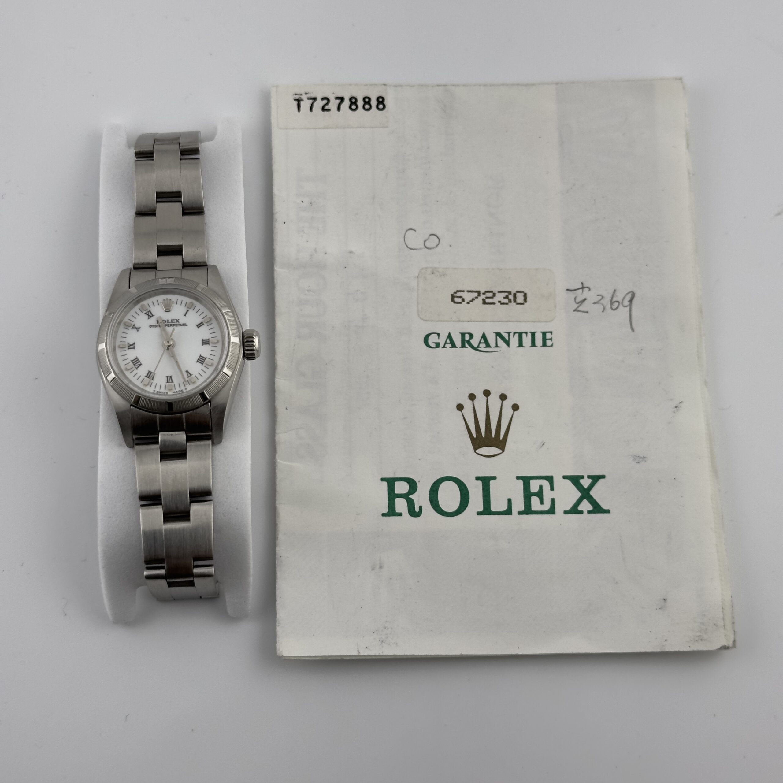 Rolex Oyster Perpetual White Roman Dial on Oyster Ref 67230 with Papers 1997