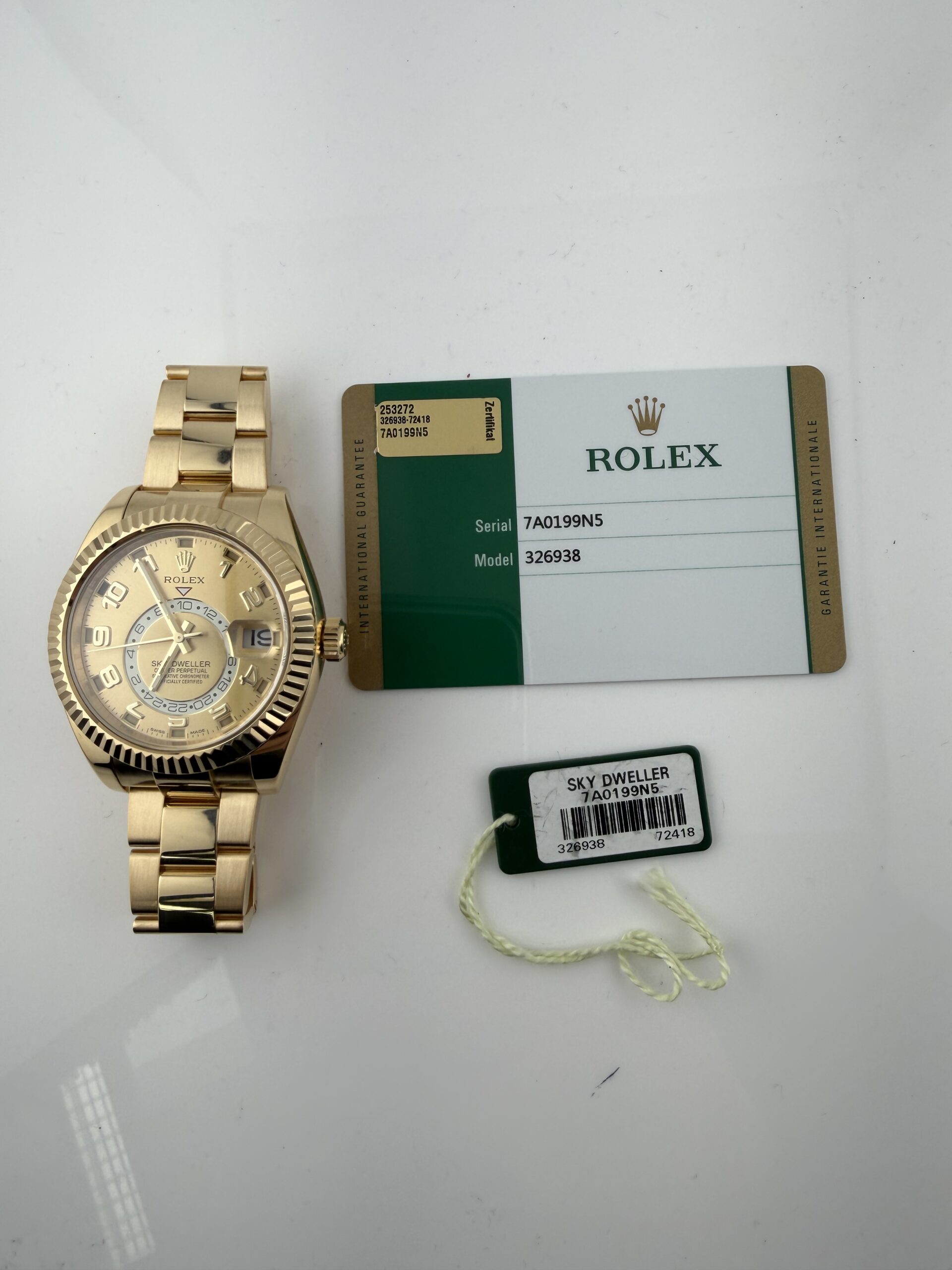 Rolex Sky Dweller Champagne Sunray Arabic Dial on Oyster Ref 326938 with New Style Card White 2016