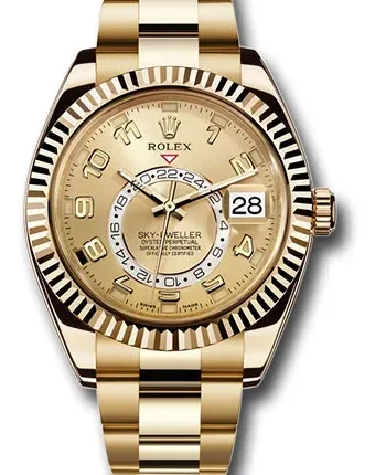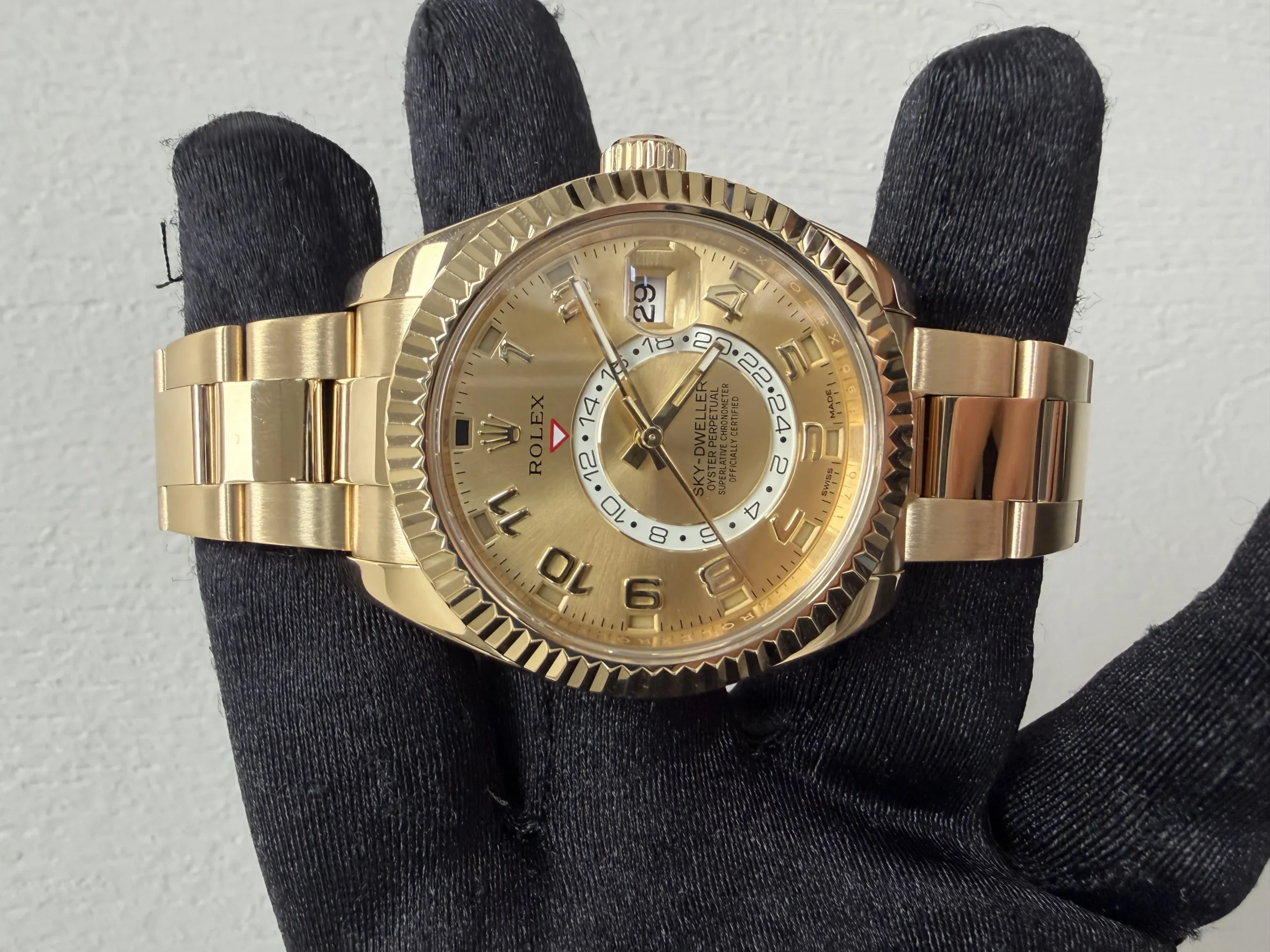 Rolex Sky Dweller Champagne Sunray Arabic Dial on Oyster Ref 326938 with New Style Card White 2018
