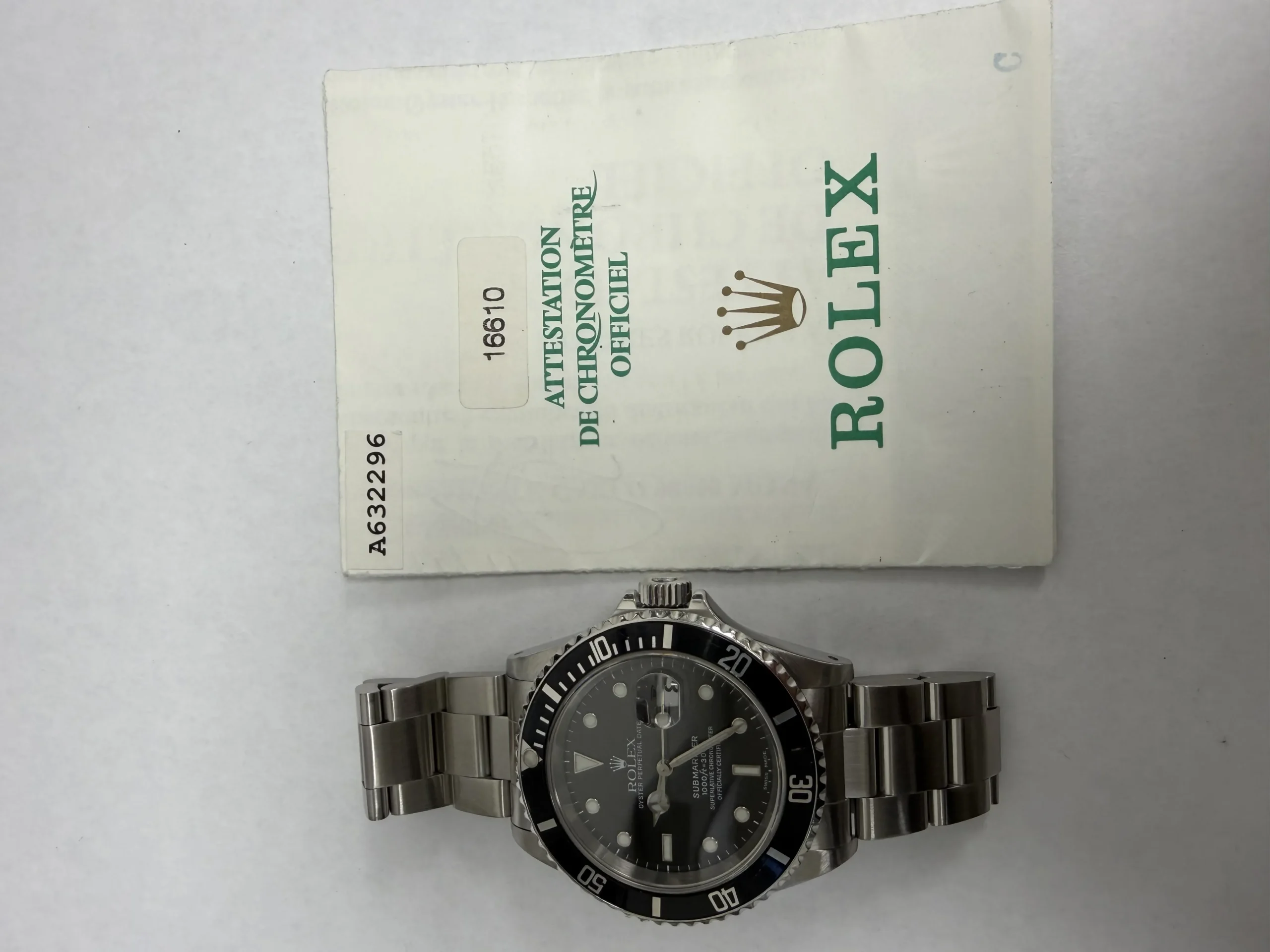 Rolex Submariner Black Dial on Oyster Ref 16610 with Papers 1999