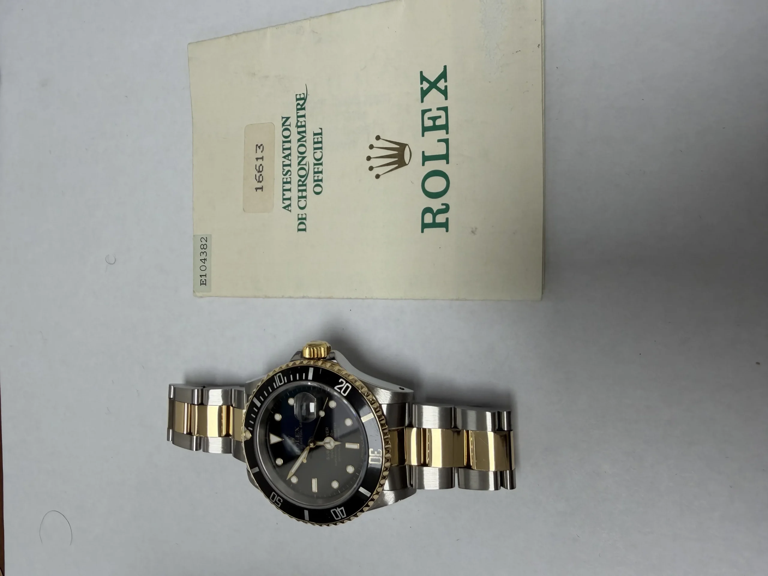 Rolex Submariner Black Dial on Oyster Ref 16613 with Papers 1990