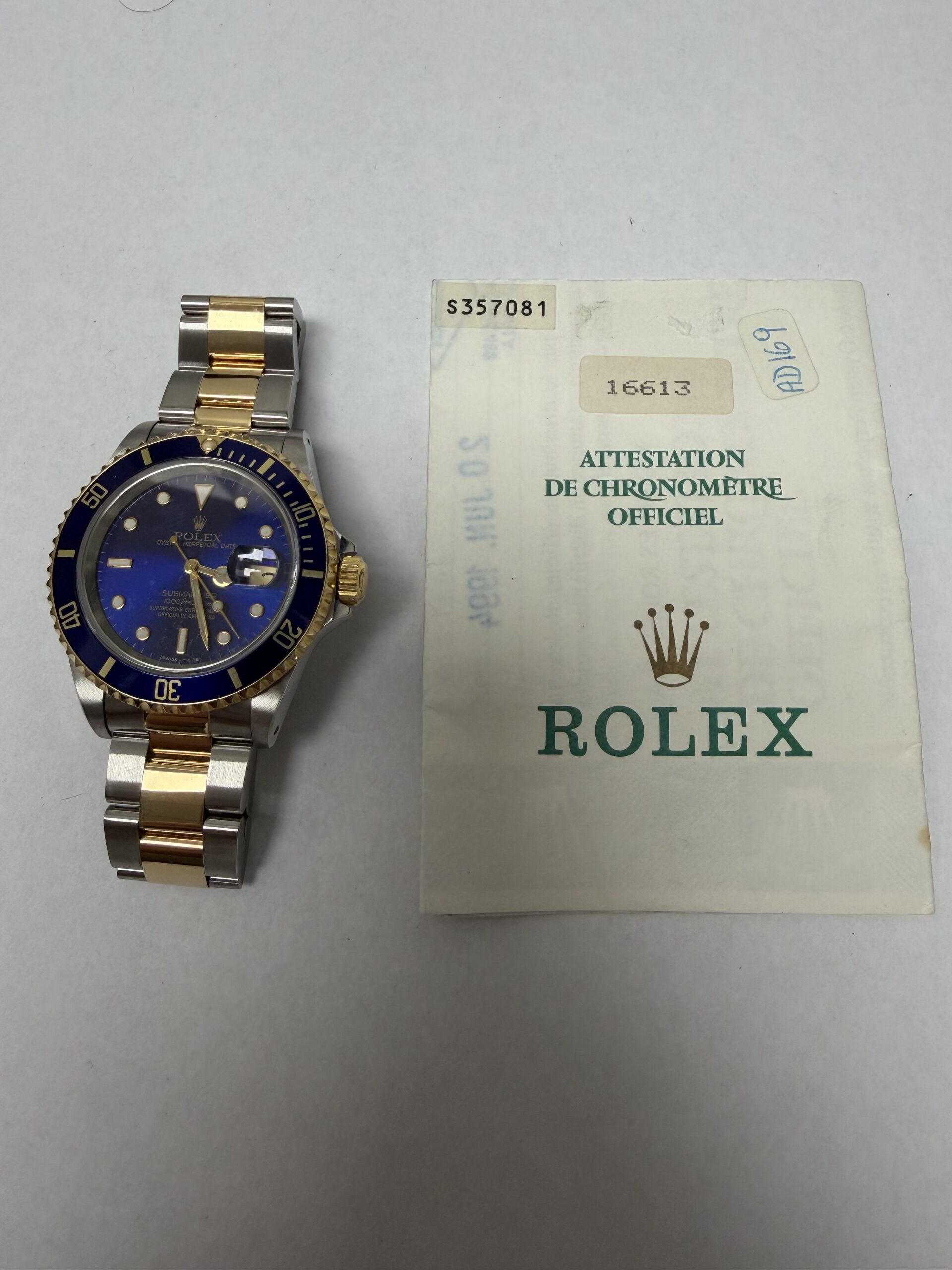 Rolex Submariner Blue Dial on Oyster Ref 16613 with Papers 1994