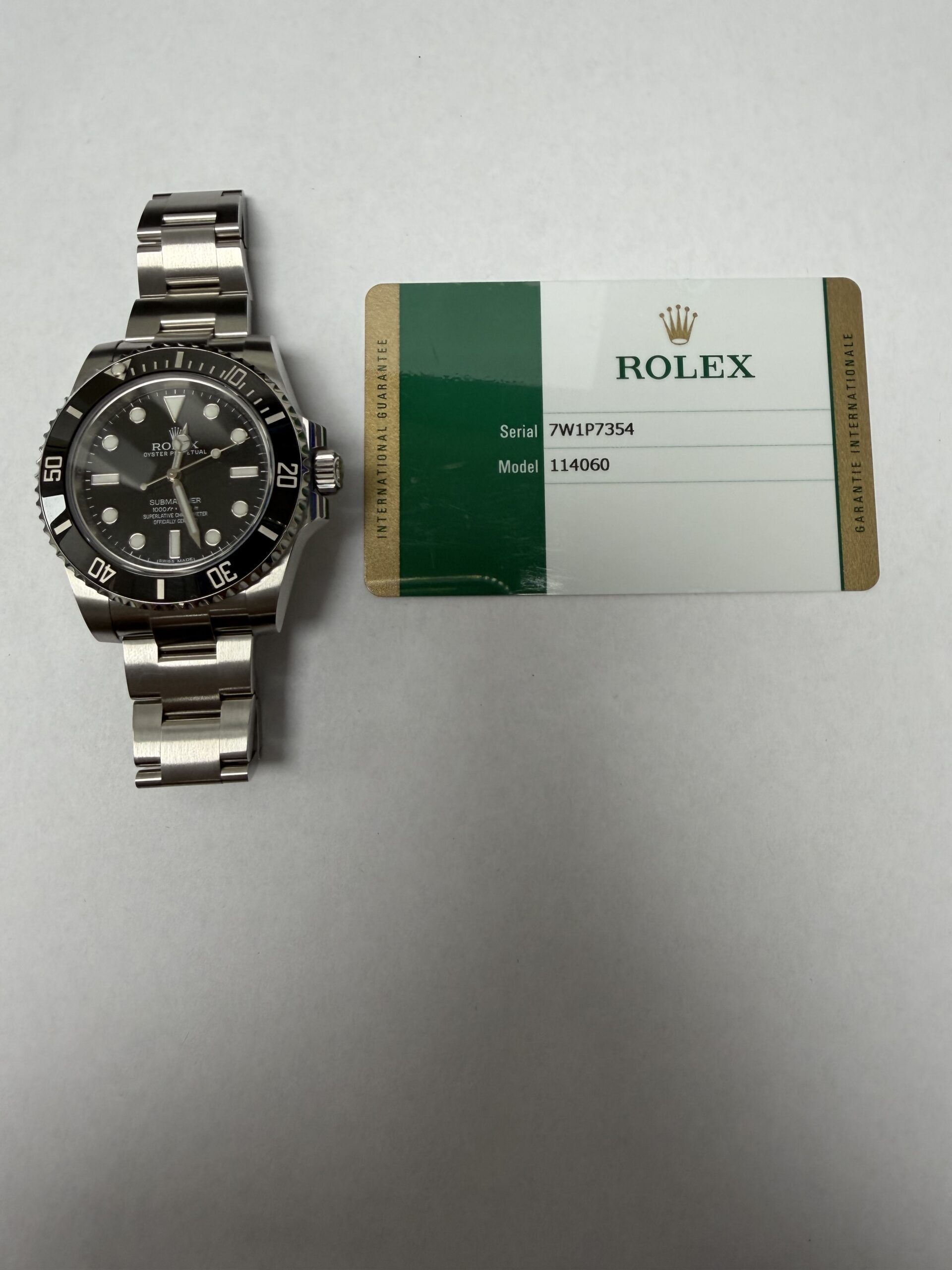 Rolex Submariner No Date Black Dial on Oyster Ref 114060 with New Style Card White 2016