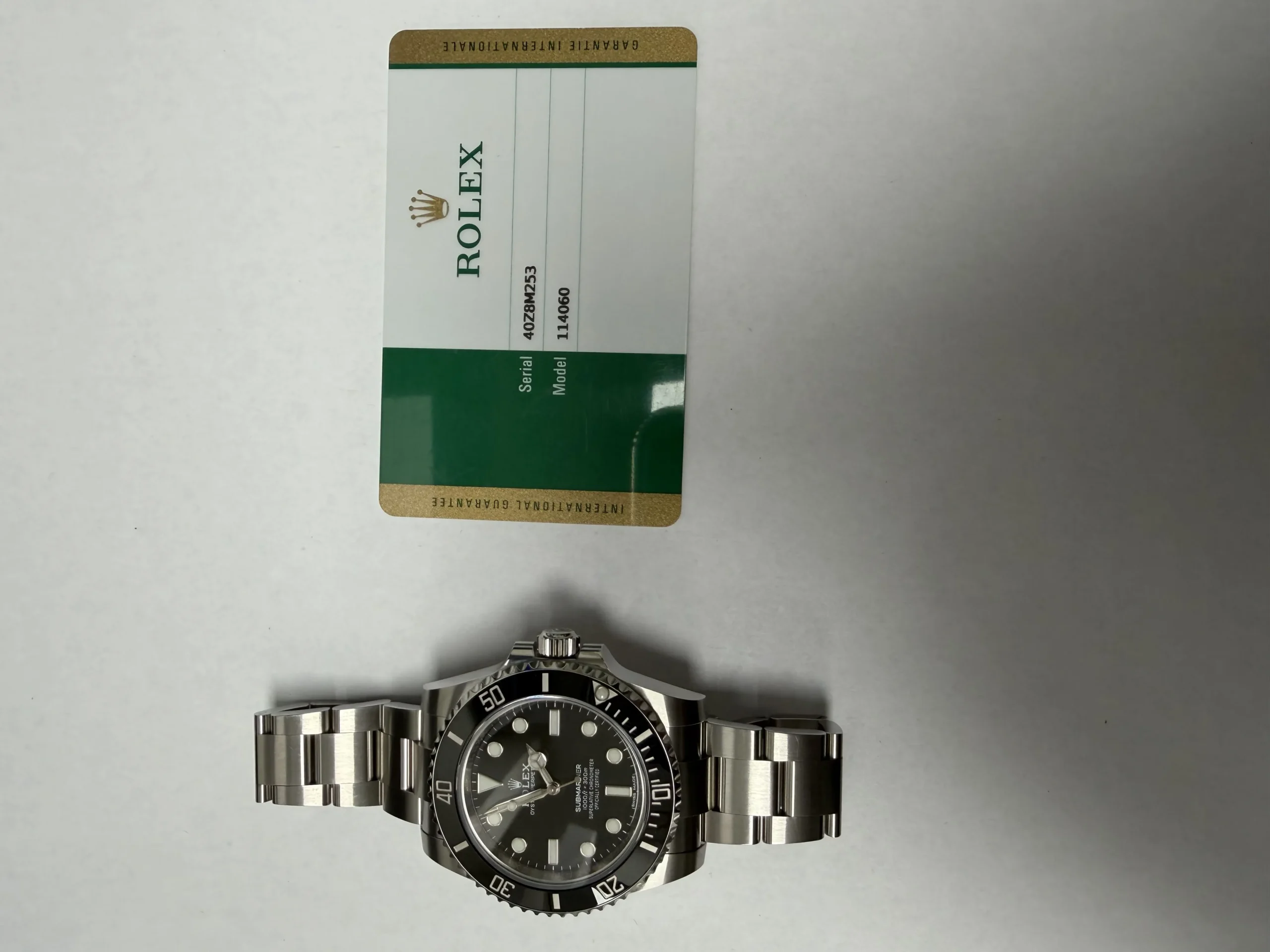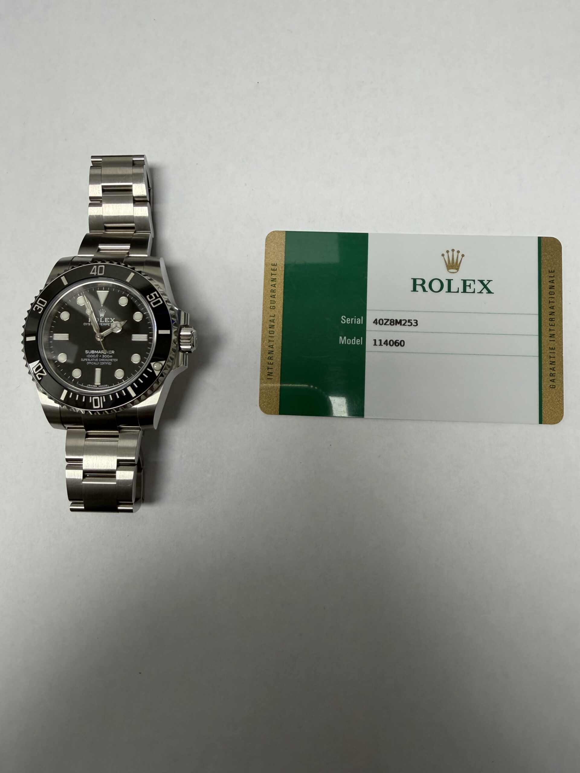 Rolex Submariner No-Date Black Dial on Oyster Ref 114060 with New Style Card White 2019