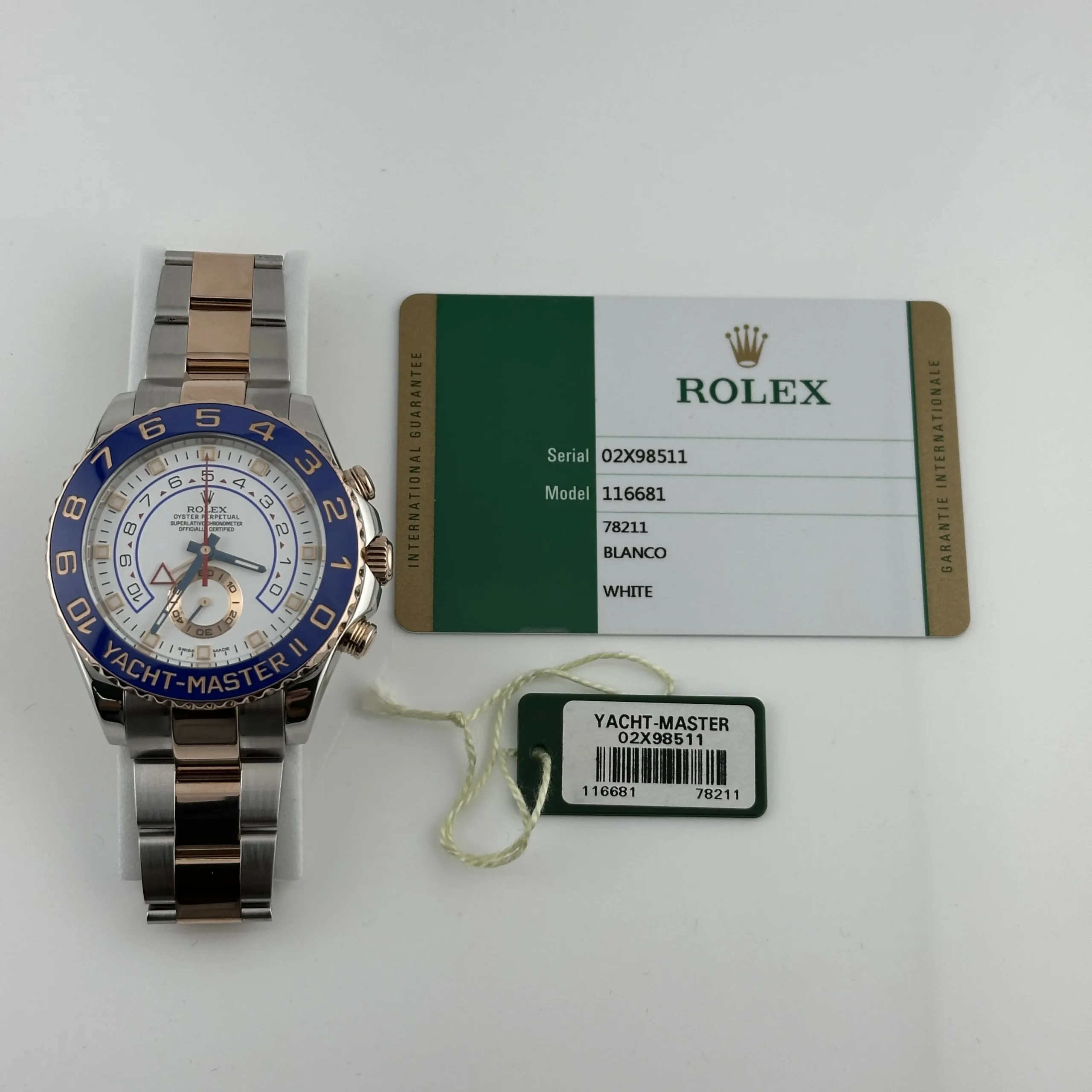 Rolex Yacht-Master II White Dial on Oyster Ref 116681 with New Style Card White 2015