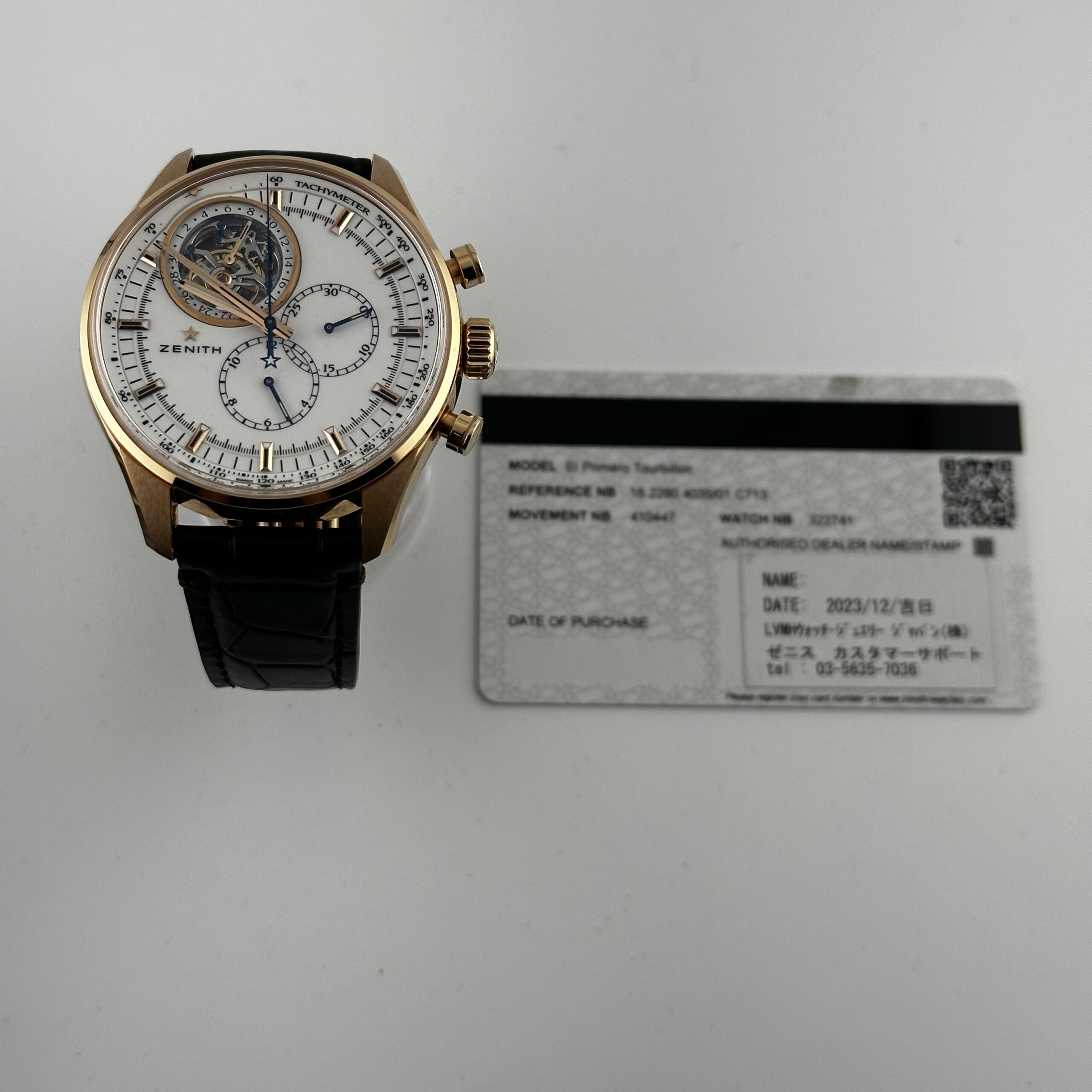 Zenith El Primero Tourbillon White Chronograph Dial on Dark Brown Leather Ref 18.2280.4035 with Card 2023